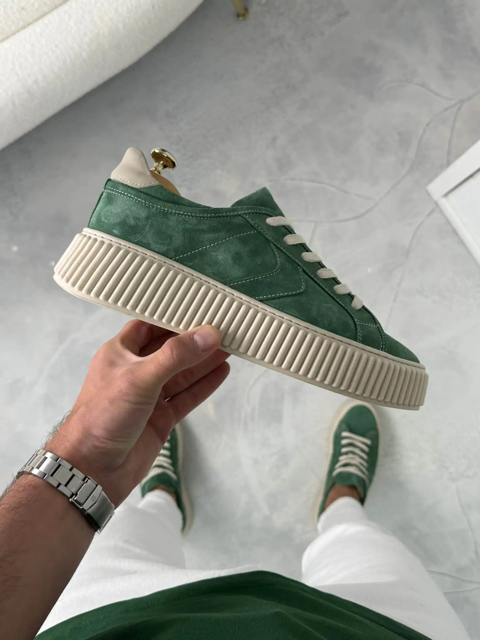 Muške kožne patike na kopčanje sa belim đonom TER9005