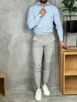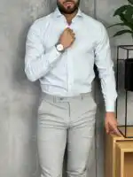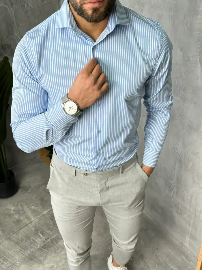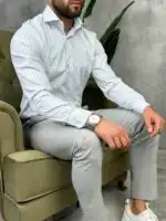 Košulja izrađena od kvalitetnog pamuka sa dodatkom elastina, koji pruža udobnost i besprekorno pristajanje tokom celog dana. Fina tekstura materijala i diskretne linije daju uredan i moderan izgled, dok kroj naglašava mušku siluetu.