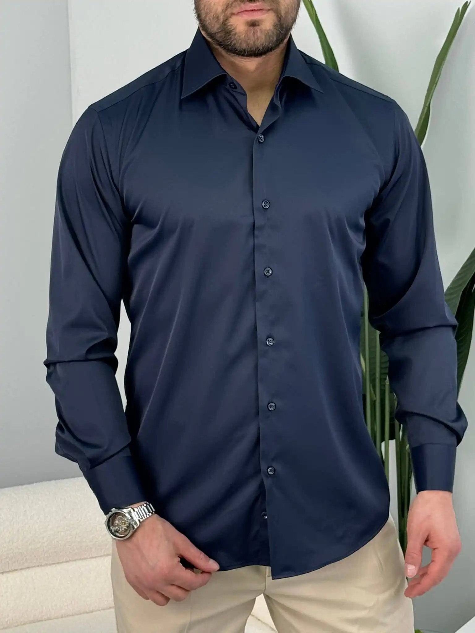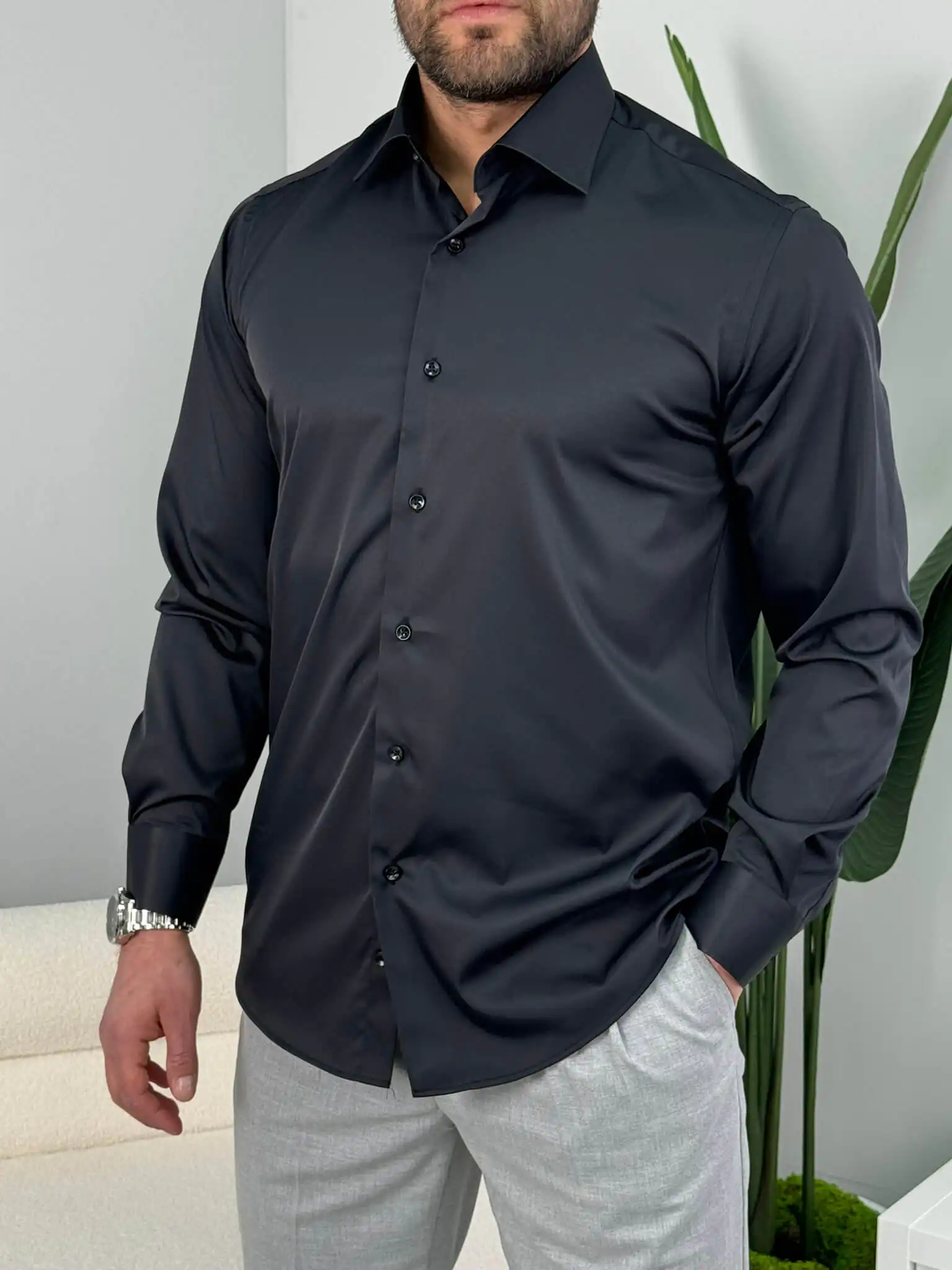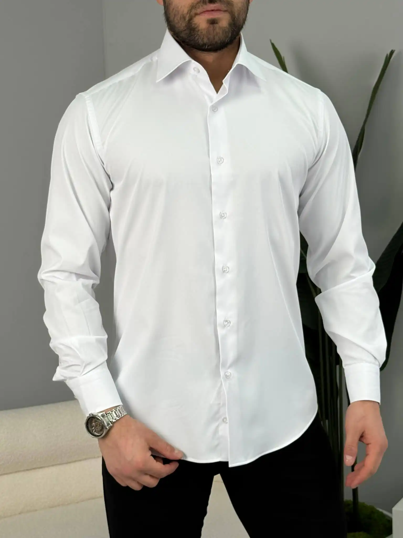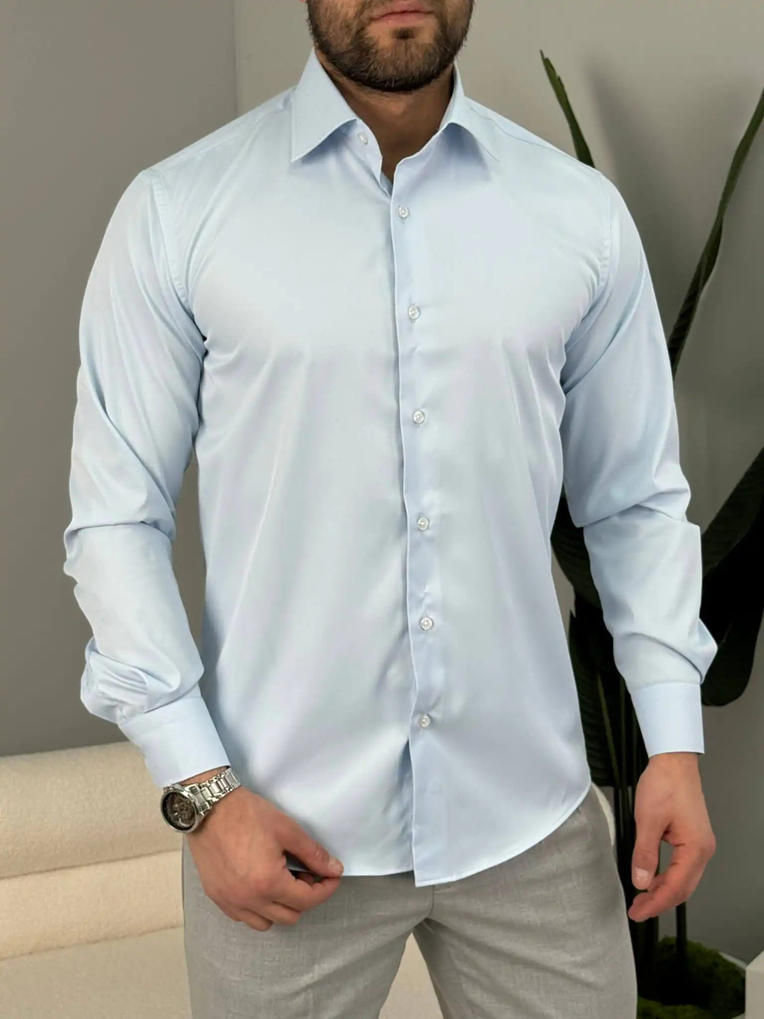 Muška slim fit košulja dug rukav – elegantna jednobojna