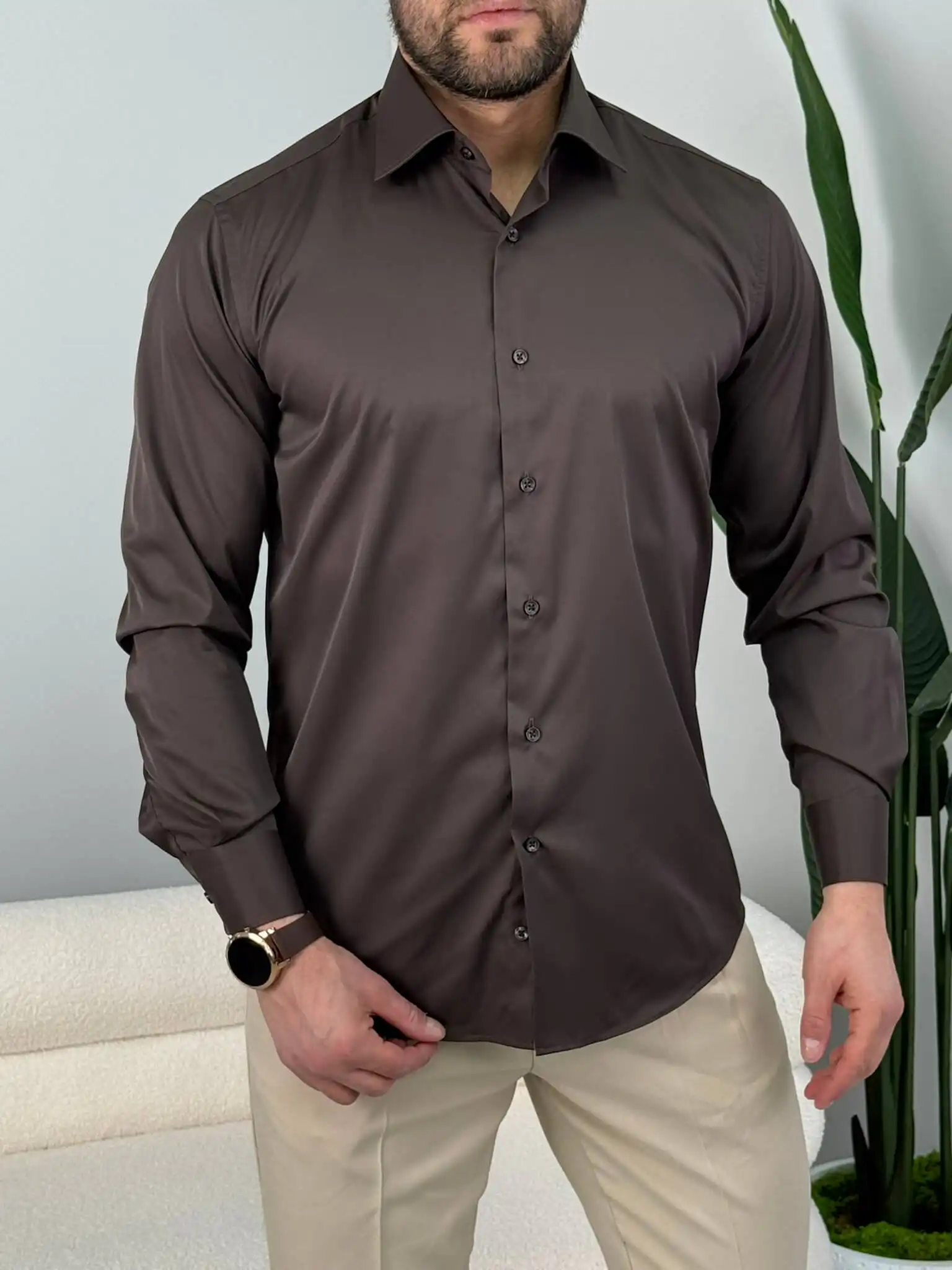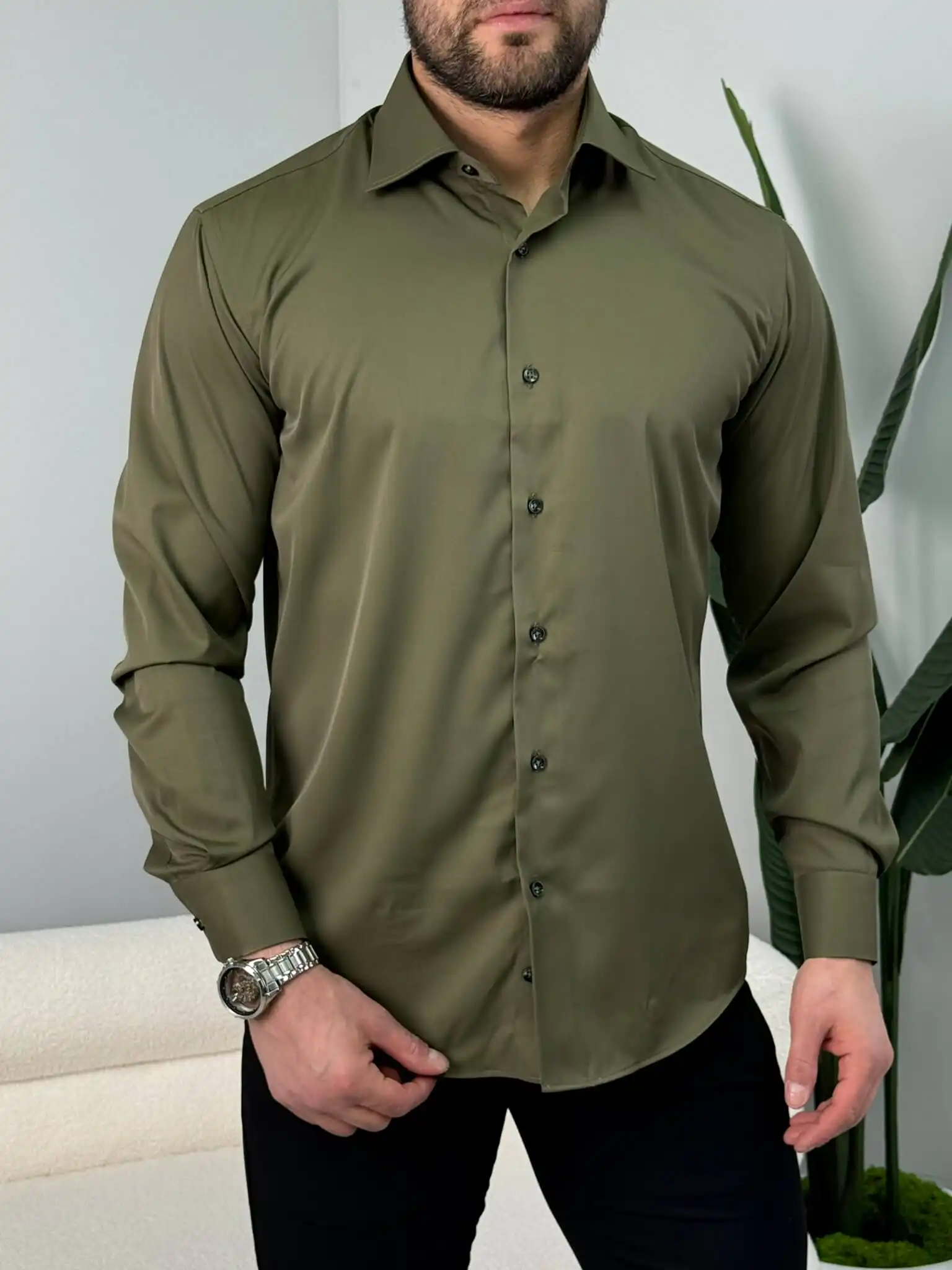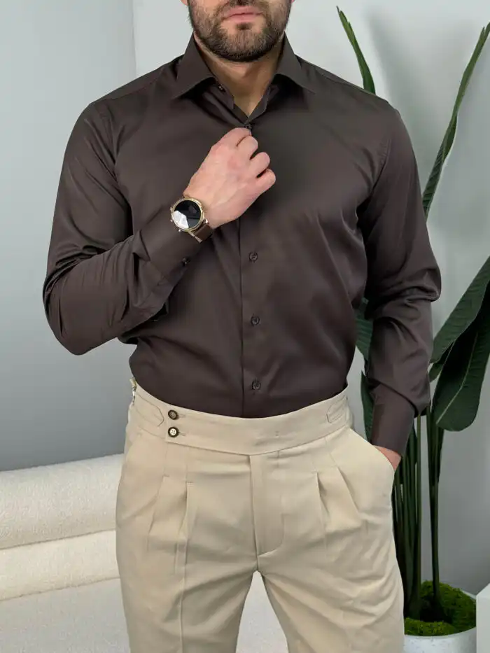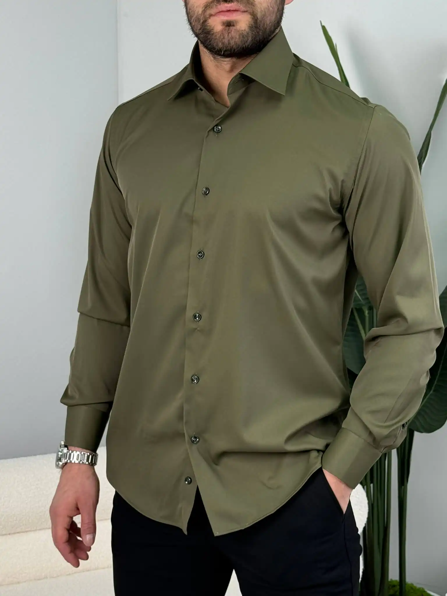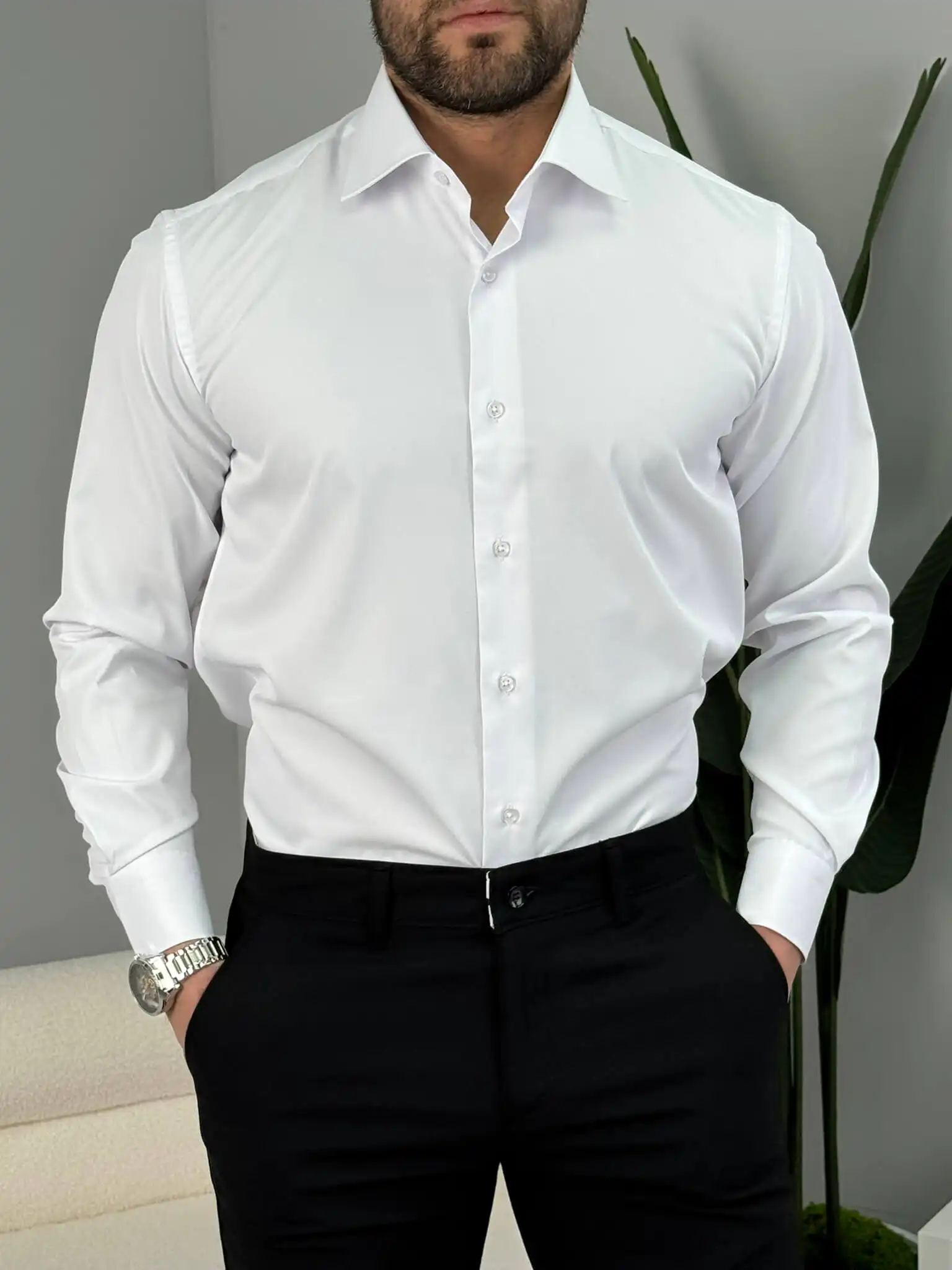 Muška slim fit košulja dug rukav – elegantna jednobojna
