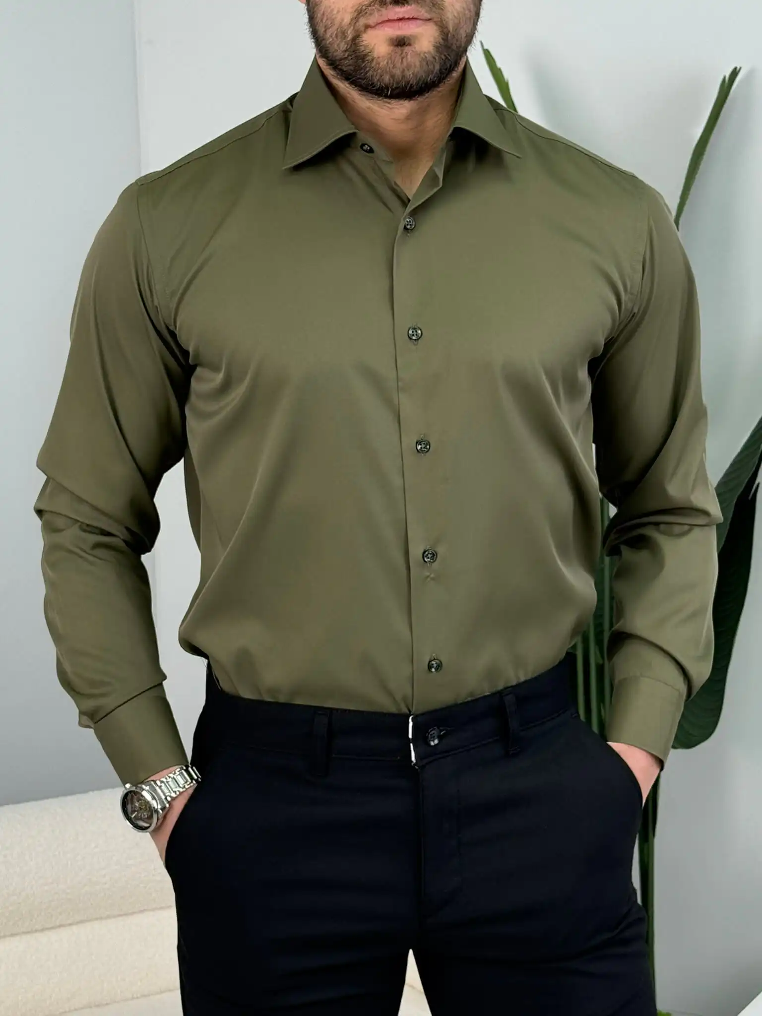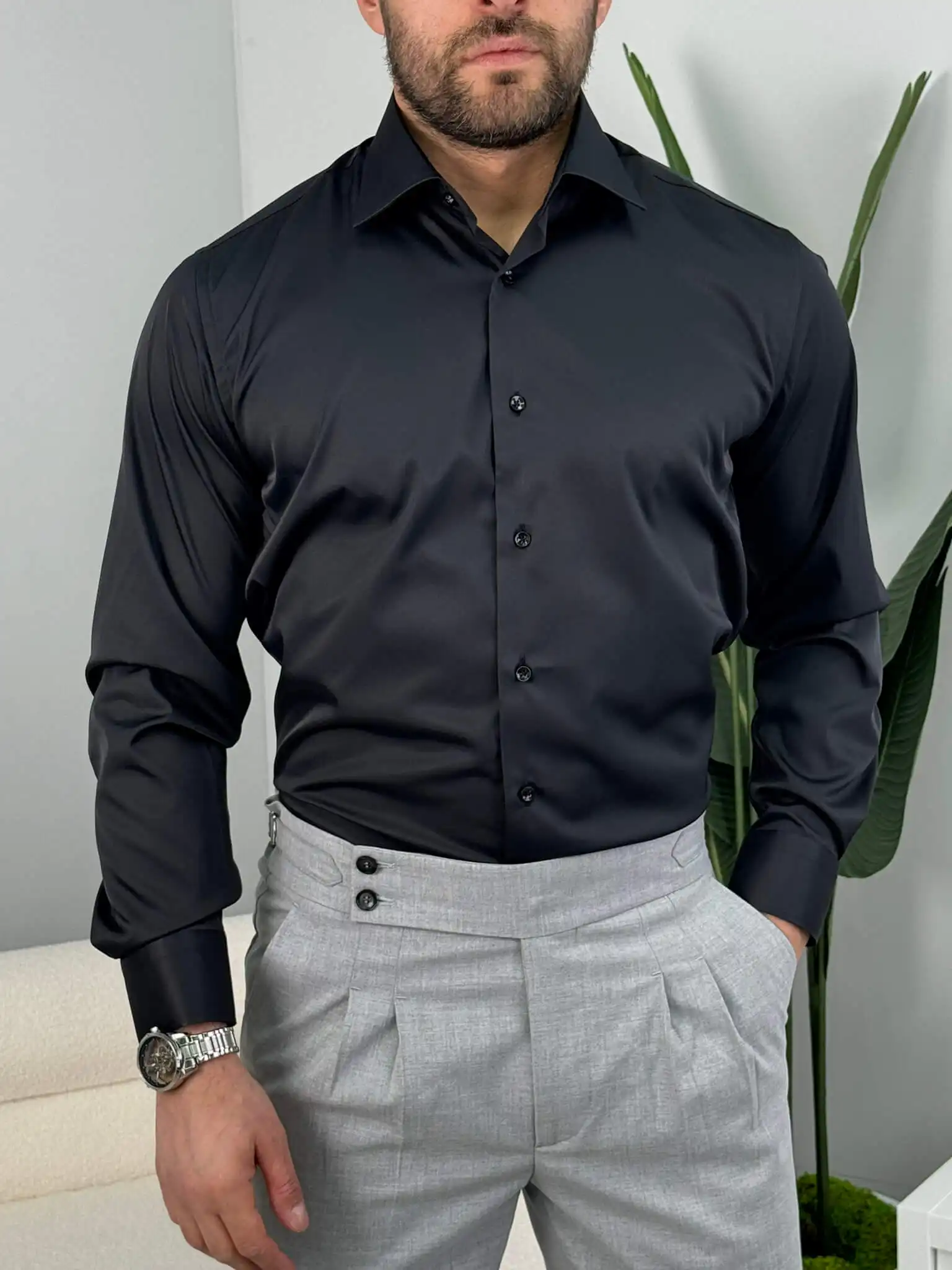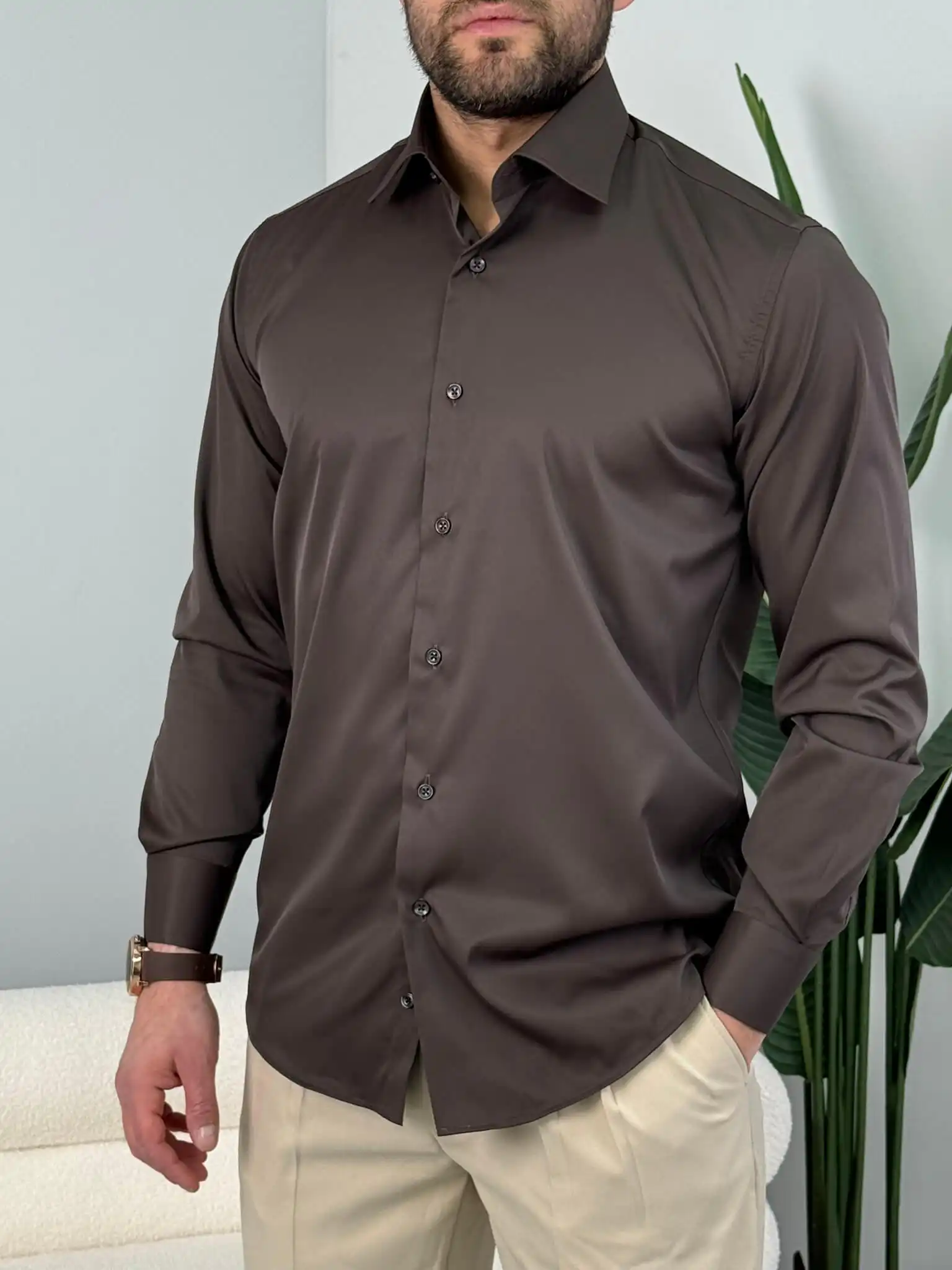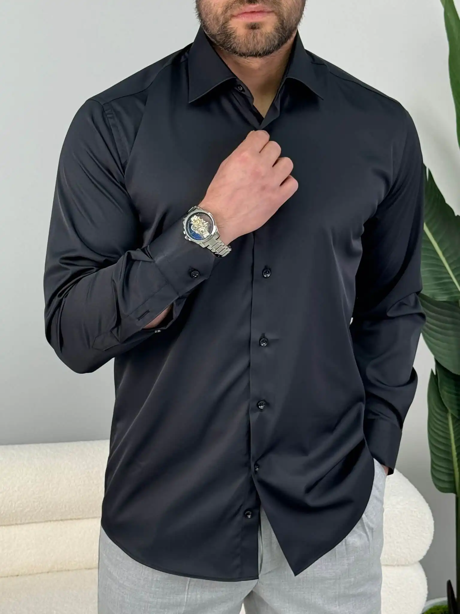 Muška slim fit košulja dug rukav – elegantna jednobojna