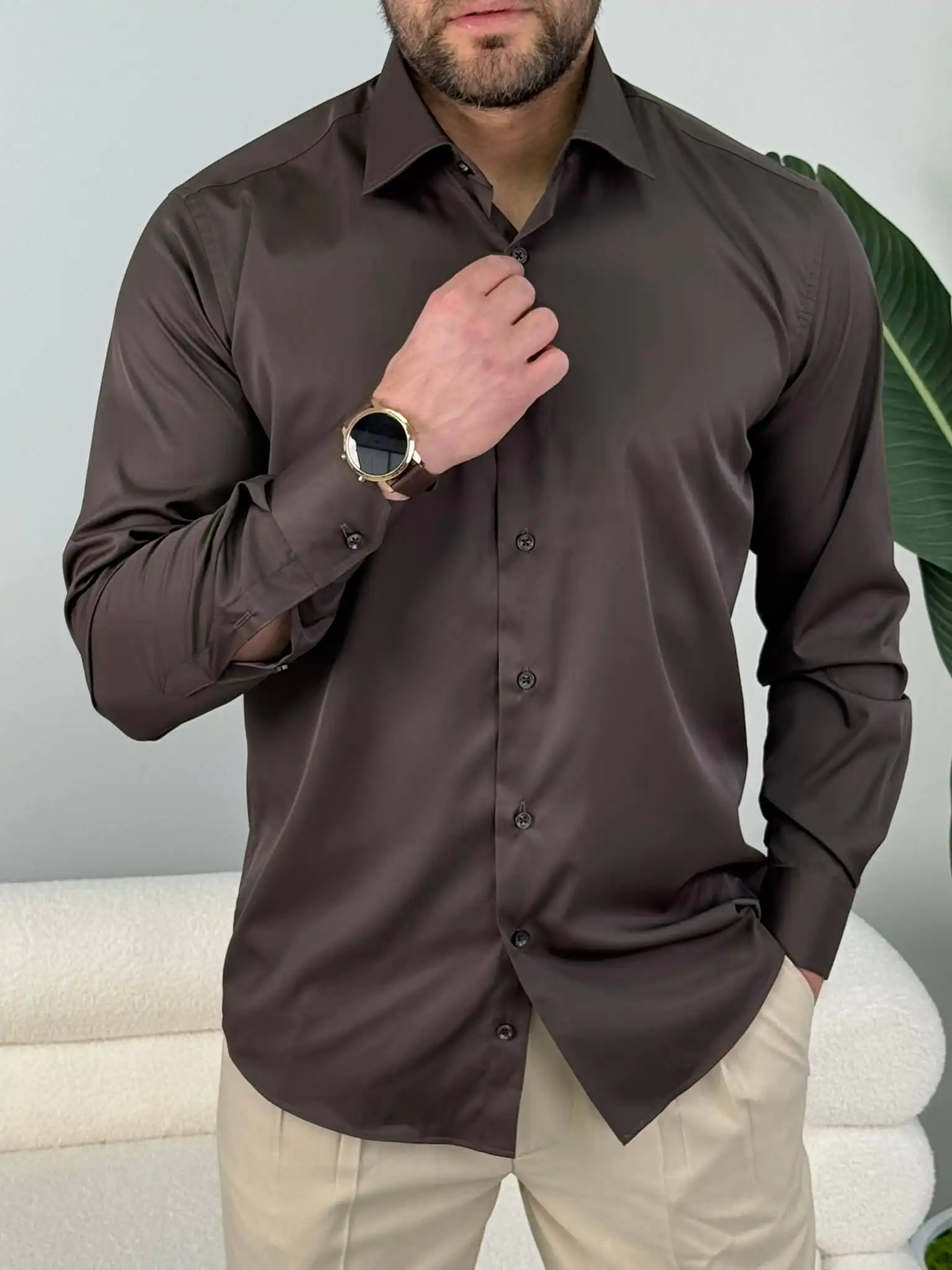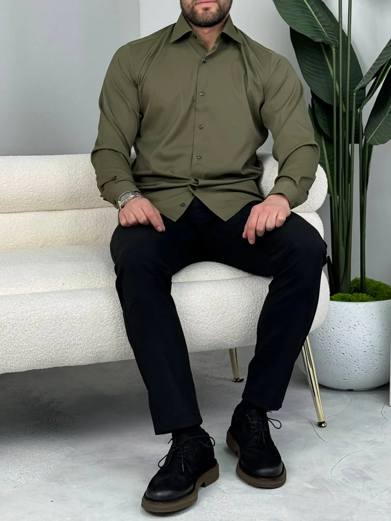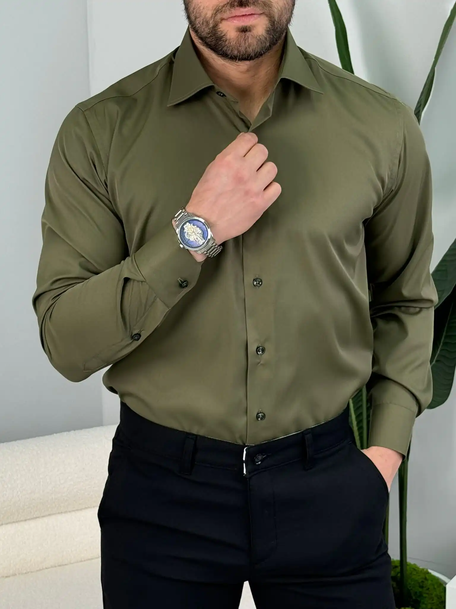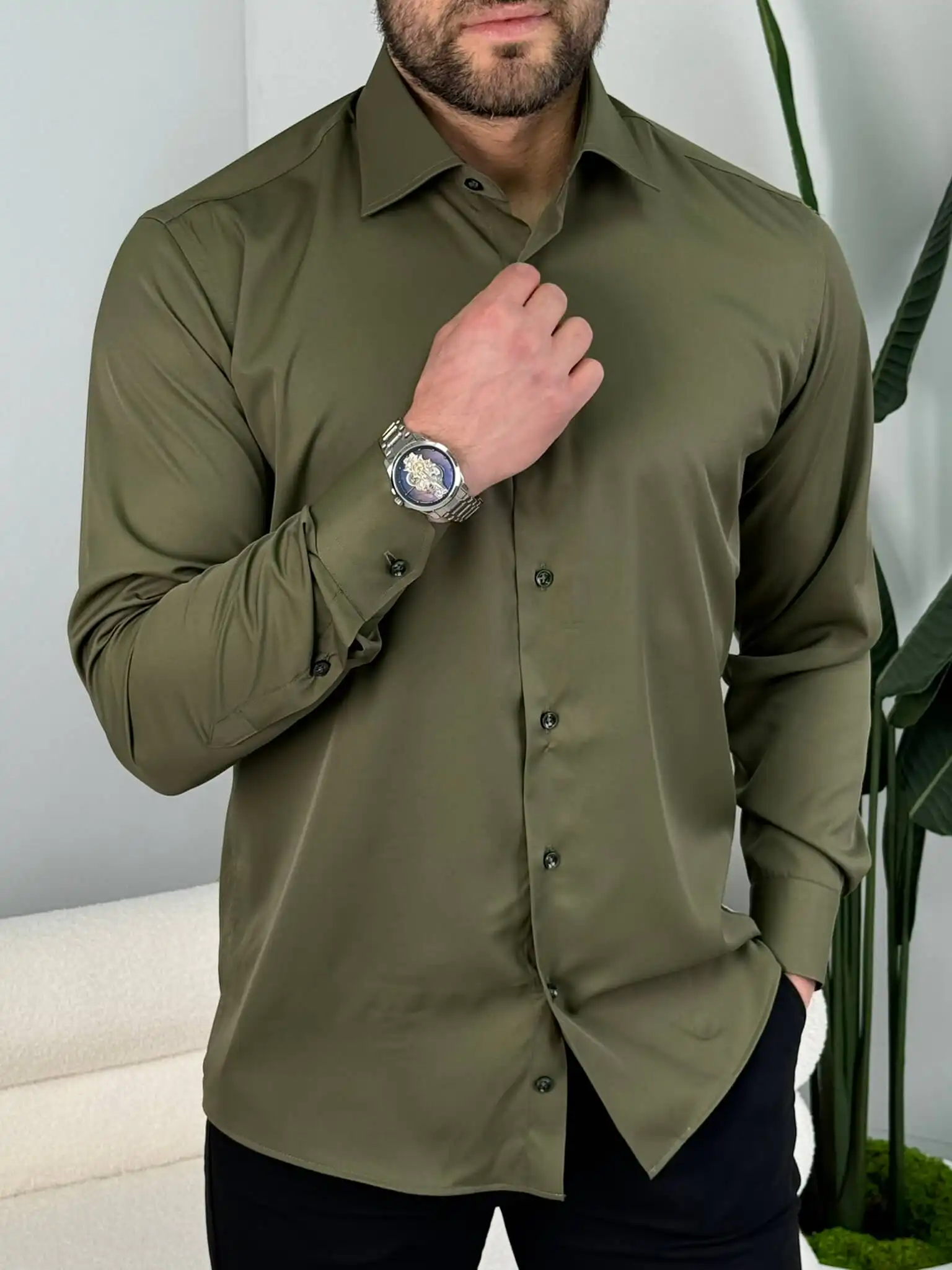 Muška slim fit košulja dug rukav – elegantna jednobojna