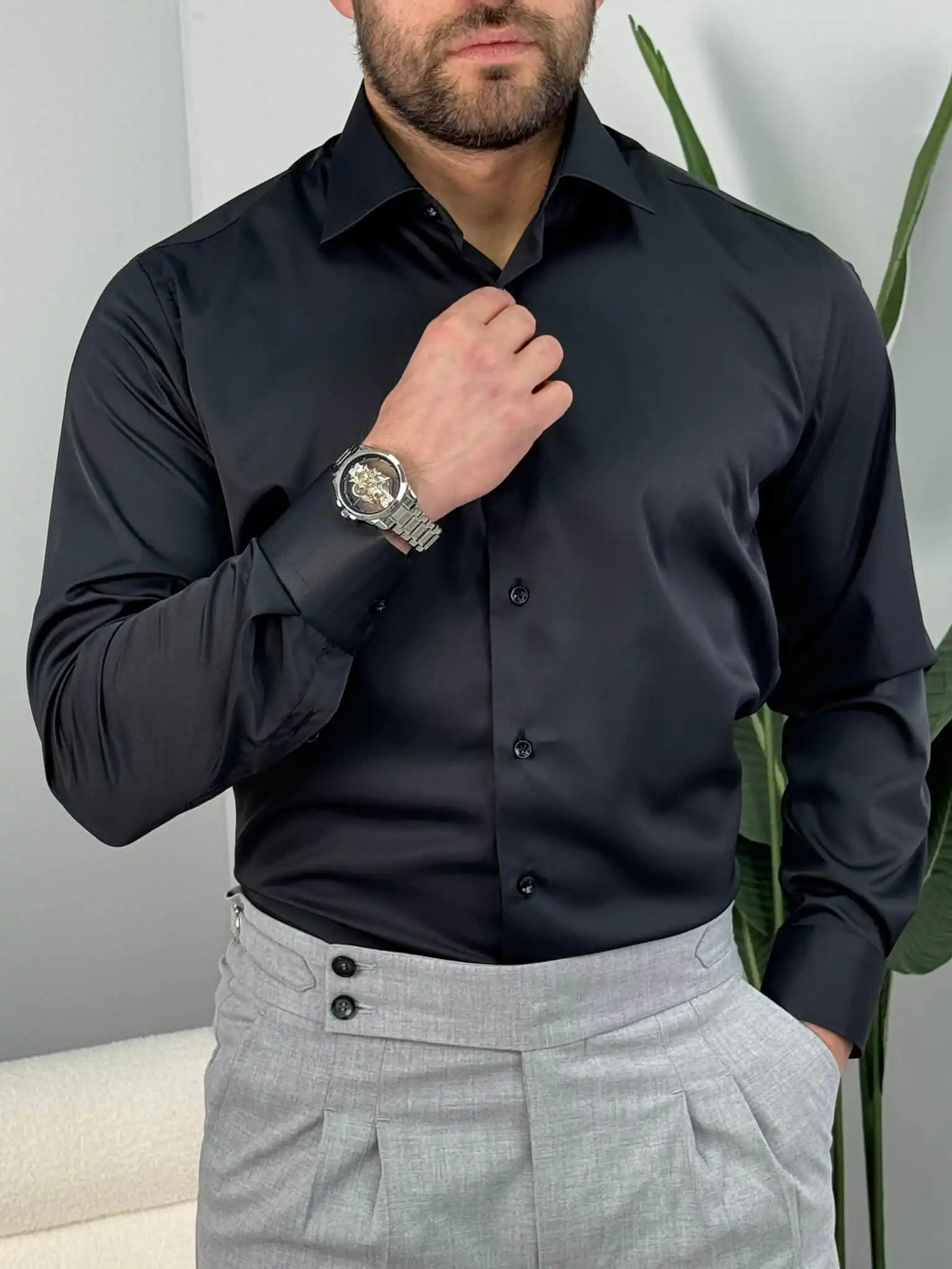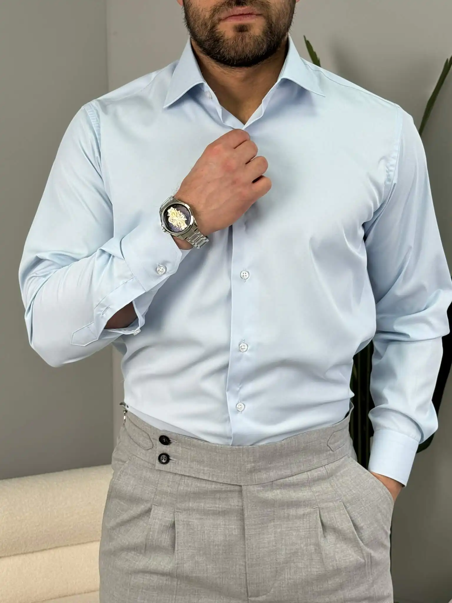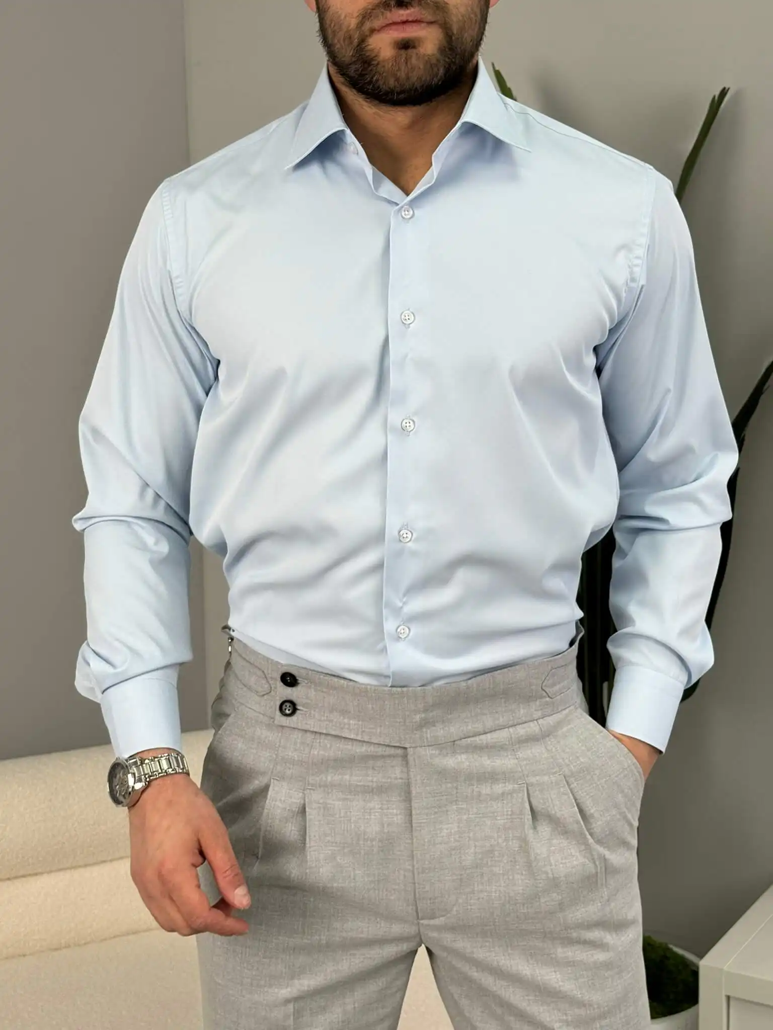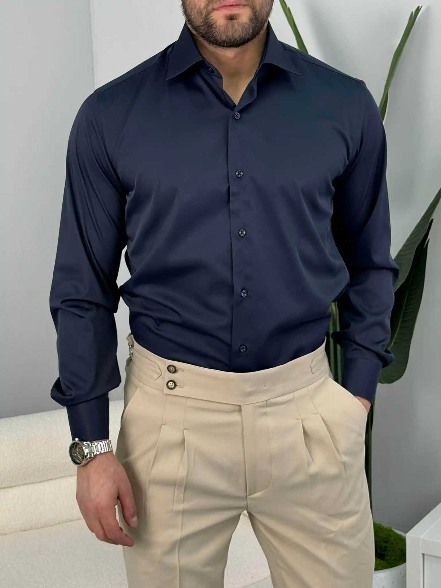 Ako želiš košulju u kojoj izgledaš ozbiljno, a da se pritom osećaš potpuno komforno, ovaj slim fit model je prava mera. Prati liniju tela bez stezanja i daje uredan, siguran izgled – bilo da je nosiš uz odelo ili u smart casual kombinaciji.