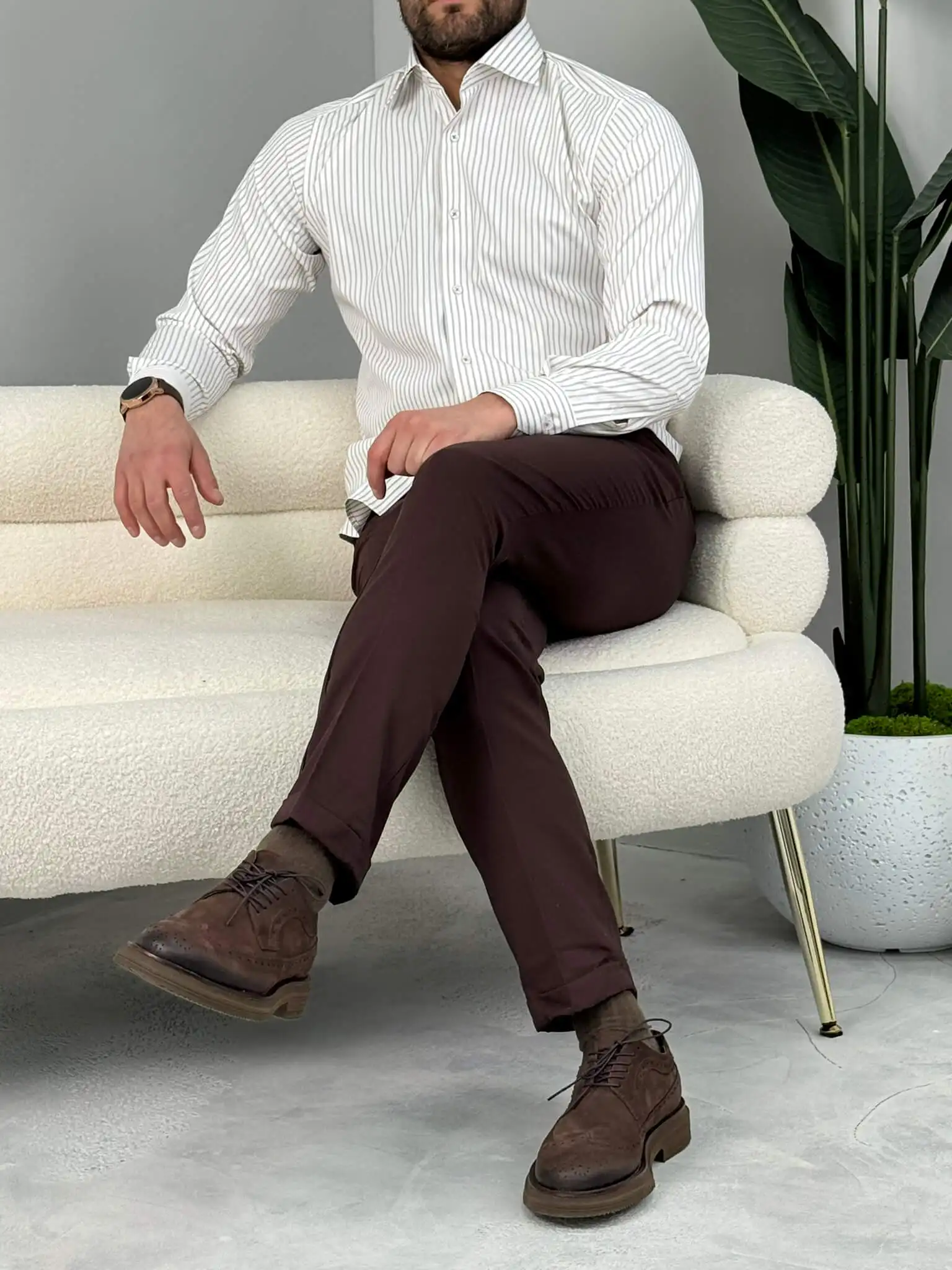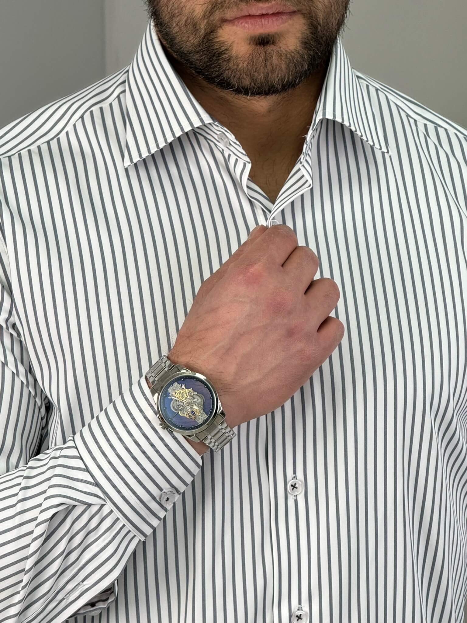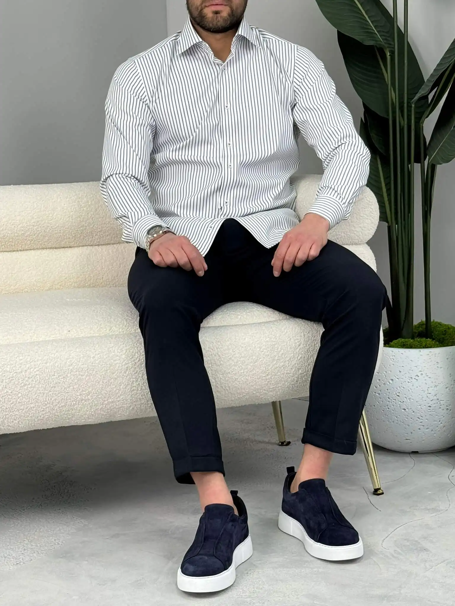 Ako tražiš mušku prugastu košulju koja ostavlja uredan i samouveren utisak, ovaj slim fit model je pravi izbor. Izraženije pruge vizuelno izdužuju figuru i daju moderniji, elegantan izgled, dok kroj prati liniju tela bez stezanja. Lako je kombinuješ uz teget, crne ili braon pantalone – idealna je za posao, sastanke i sve prilike gde želiš da izgledaš sređeno bez preterivanja.