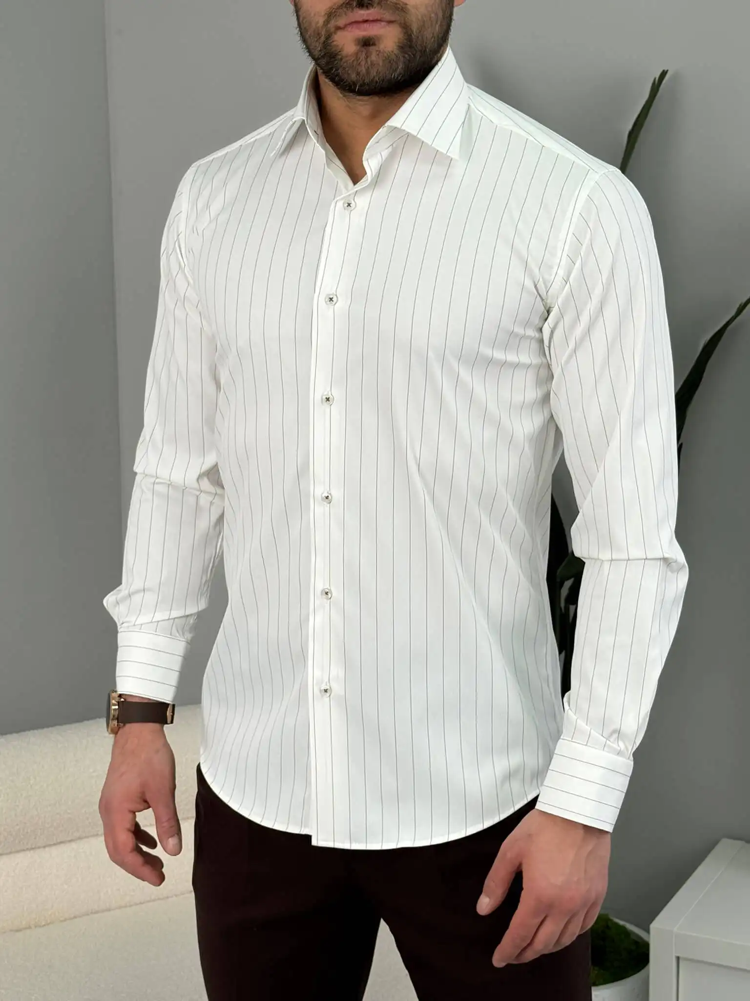 Muška slim fit košulja na tanke pruge – elegantan model dug rukav