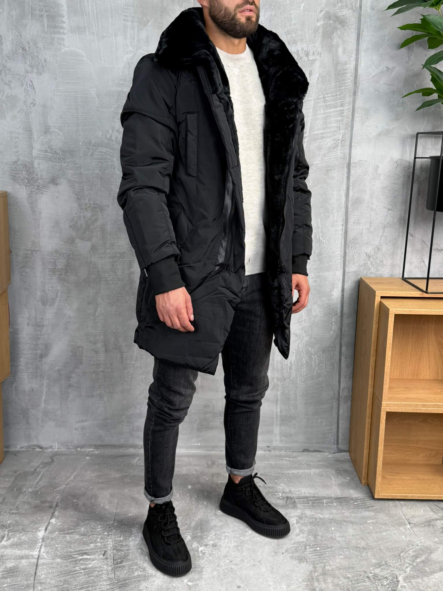 Muška zimska jakna sa toplom postavom od veštačkog krzna. Jakna poseduje praktične džepove i kopčanje na rajsferšlus i dugmad, što pruža maksimalnu udobnost i zaštitu tokom hladnih dana.