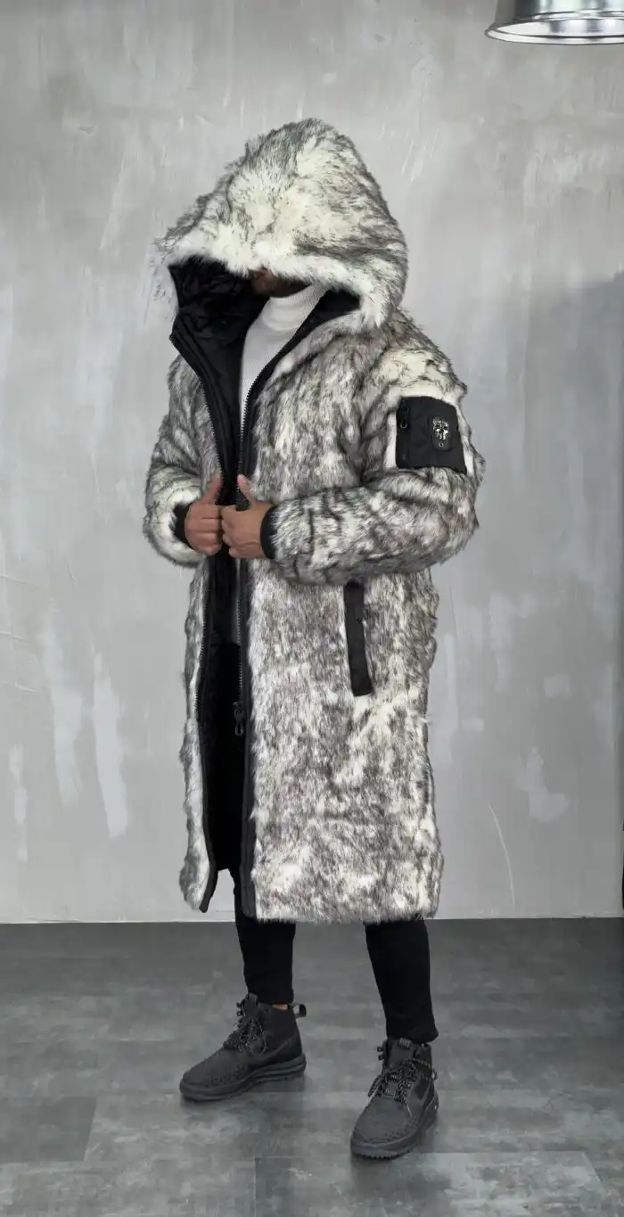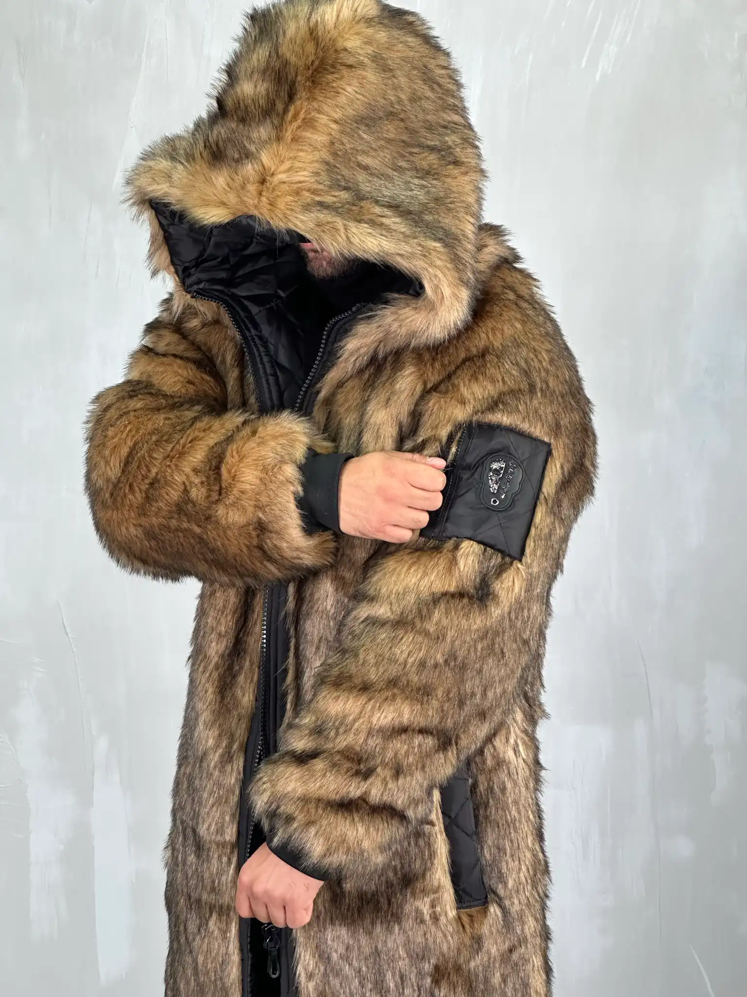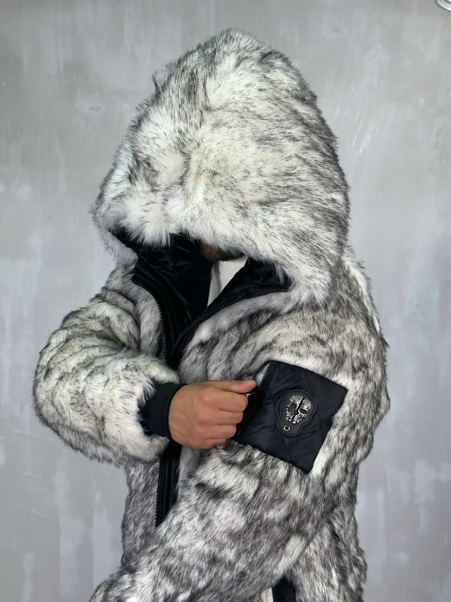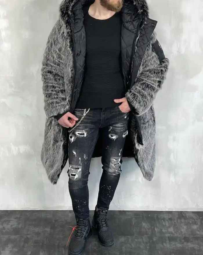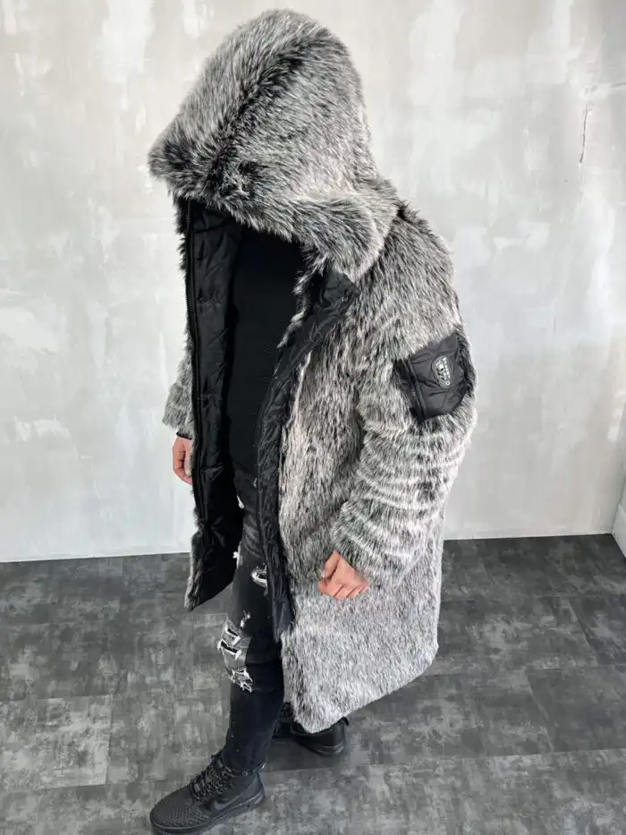 Muška jakna sa kapuljačom u viking stilu, punjena termofiberom i obložena krznom namenjena za hladne dane.