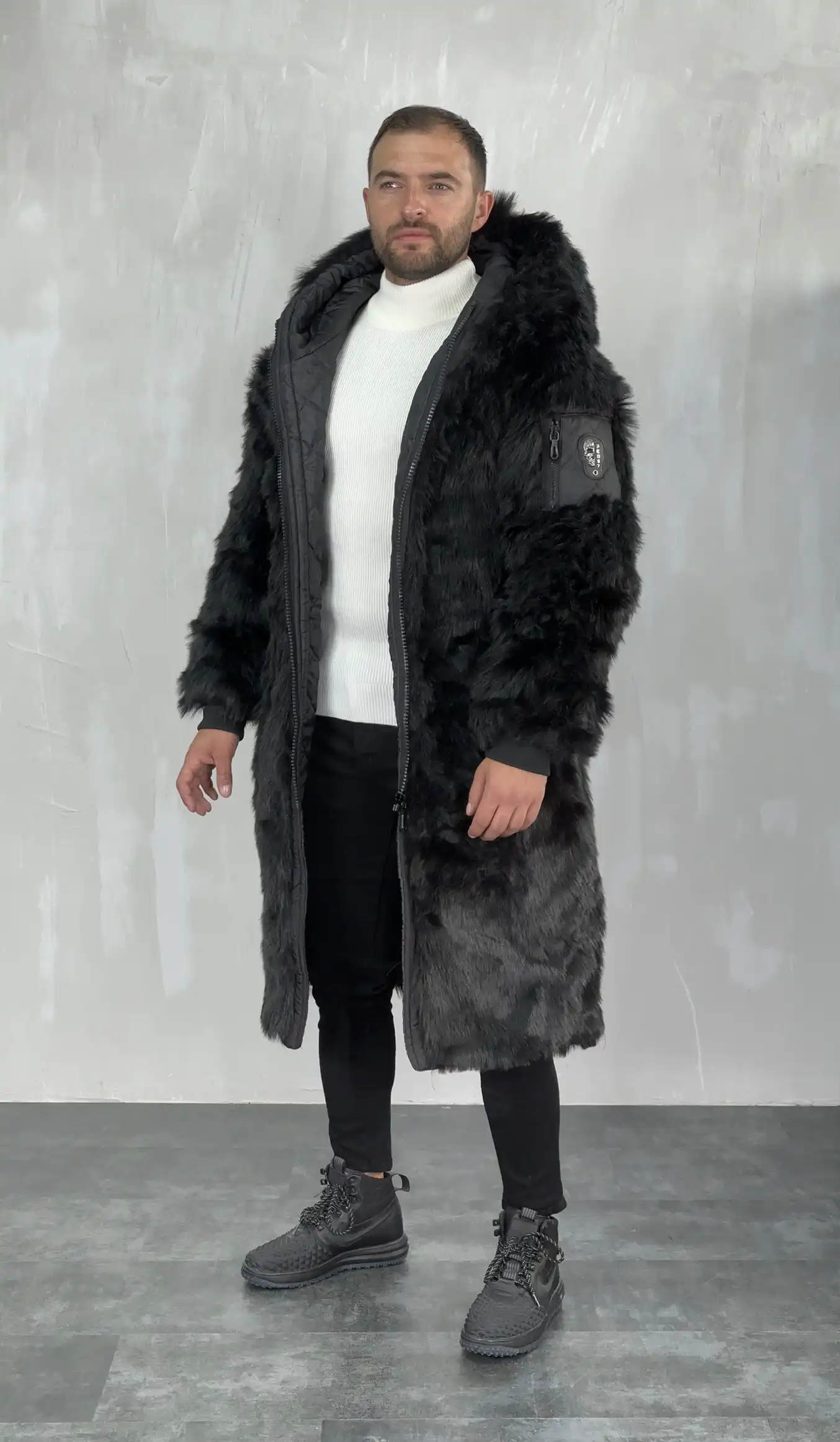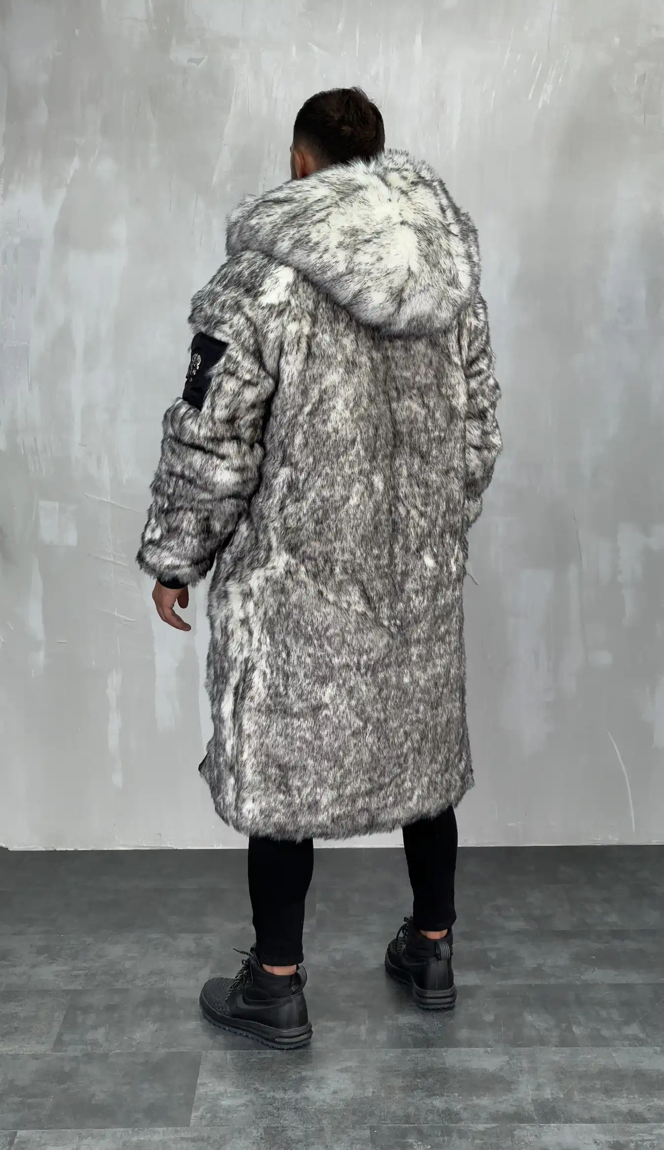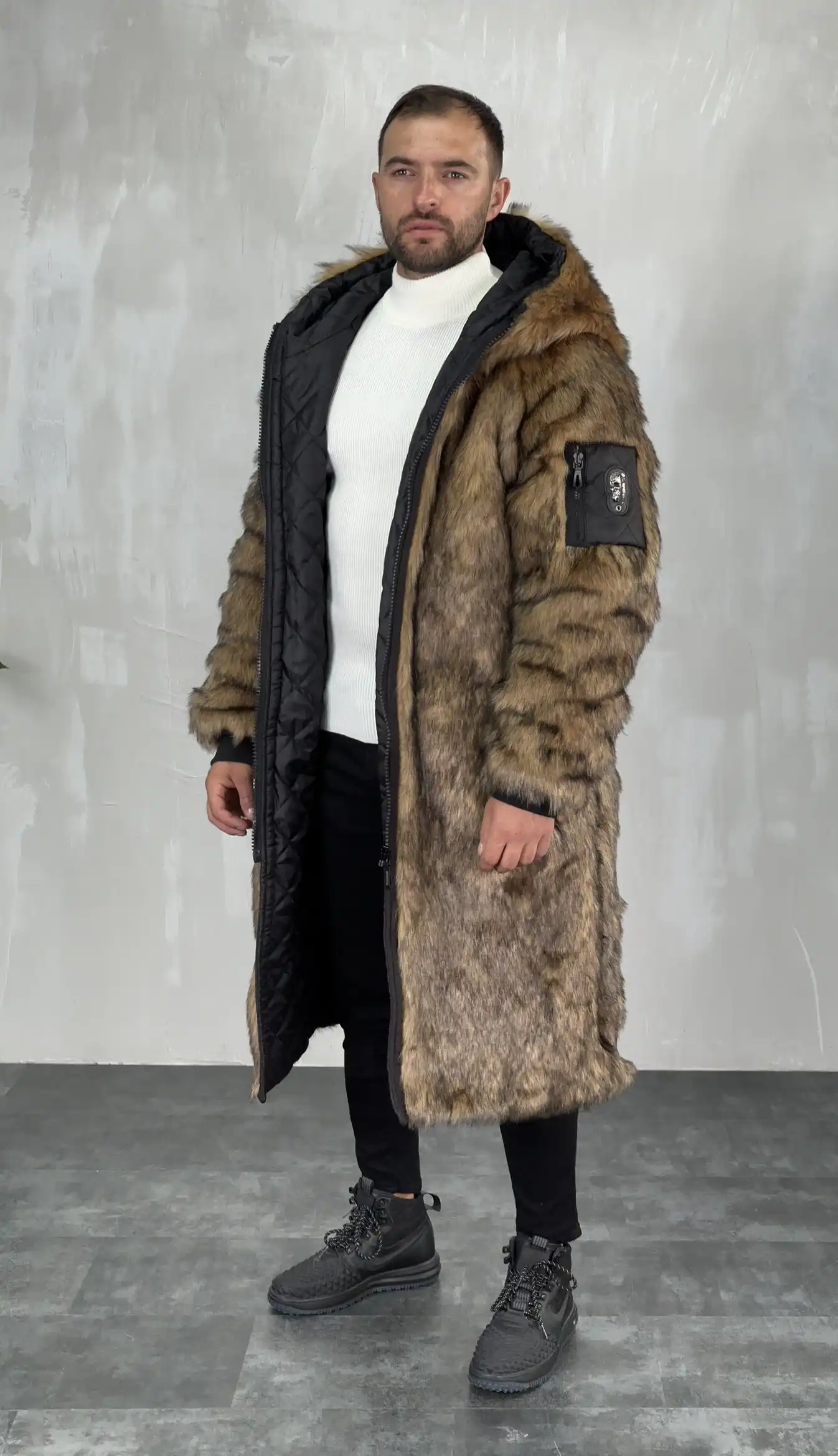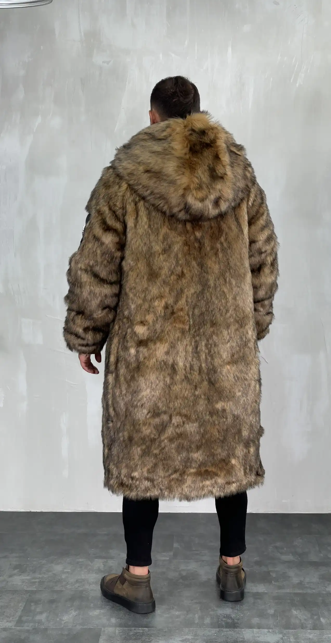 Muška jakna sa kapuljačom u viking stilu, punjena termofiberom i obložena krznom namenjena za hladne dane.