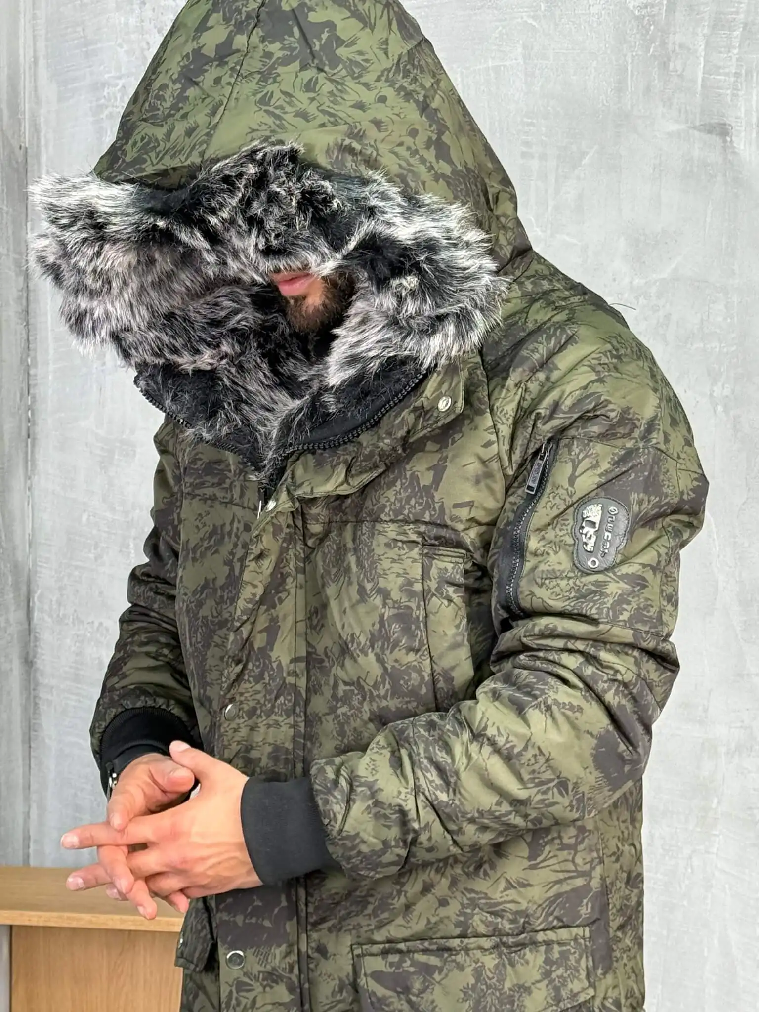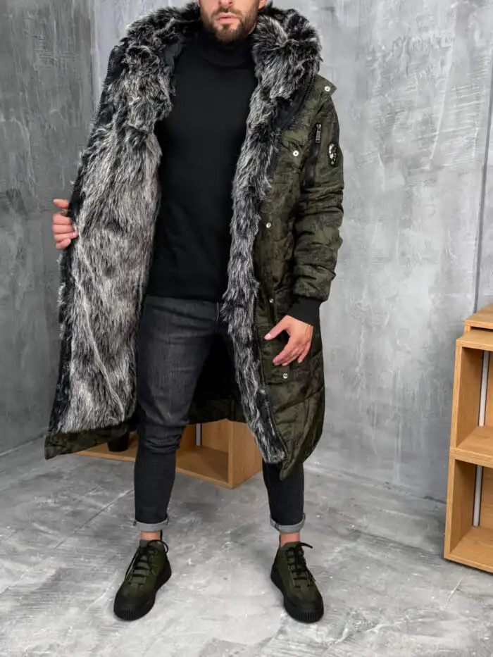 Muška zimska jakna sa kapuljačom, punjena termofiberom namenjena za hladne dane.
