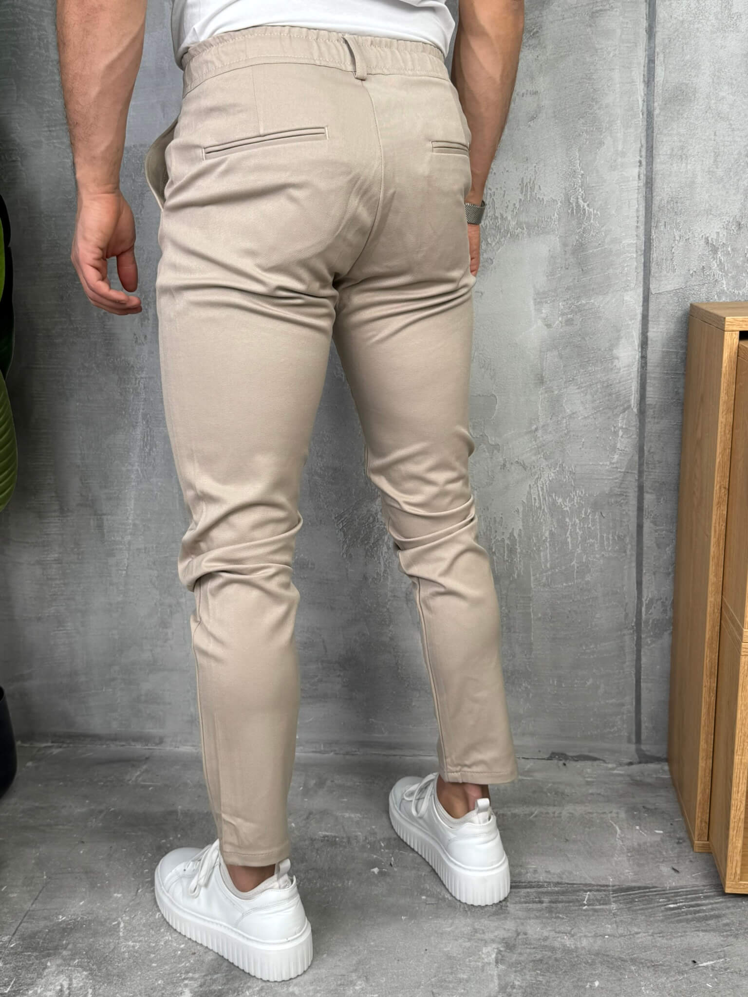 Elastični pojas sa učkurom omogućava savršeno prijanjanje, a lagani „tapered“ kroj vizuelno izdužuje nogu i daje uredan izgled bez napora. Idealne su za kombinovanje uz košulju, rolku ili sako u svakoj prilici izgledate dotjerano, ali se osjećate kao da nosite trenerku.