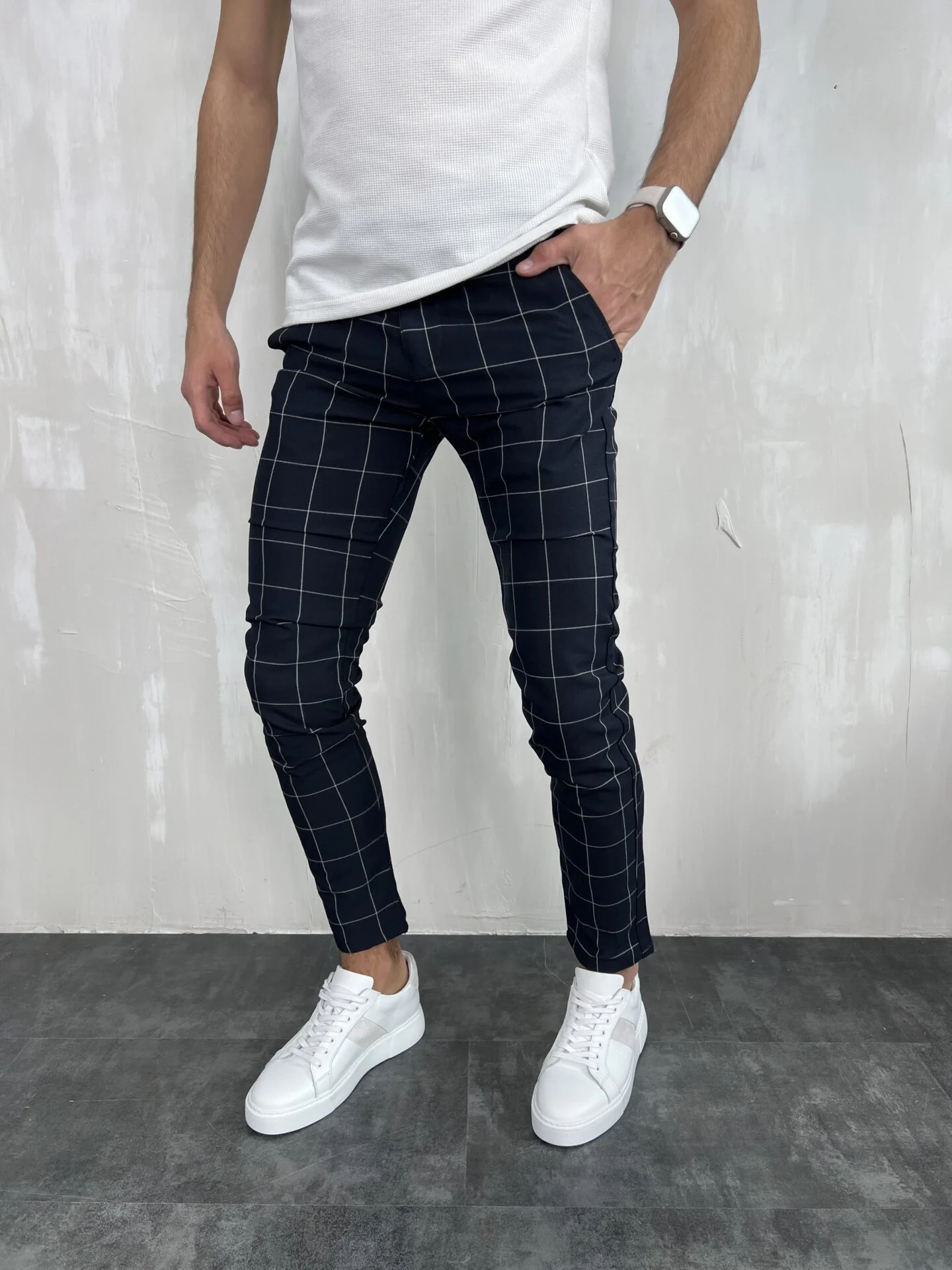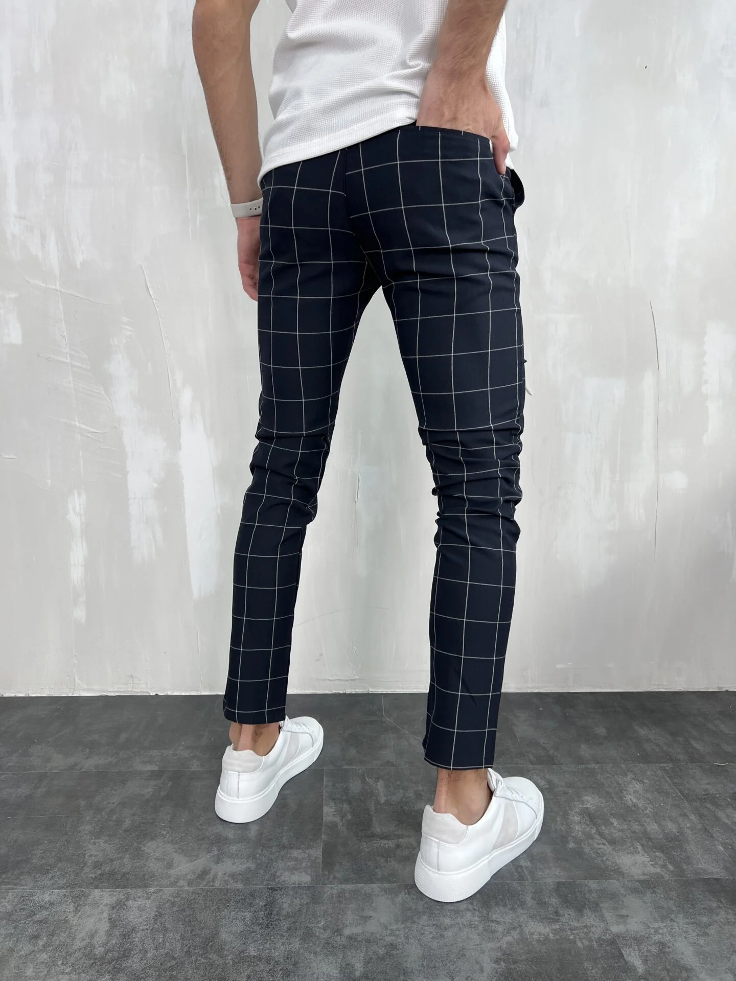 Muške karirane slim fit pantalone – elegantne pantalone