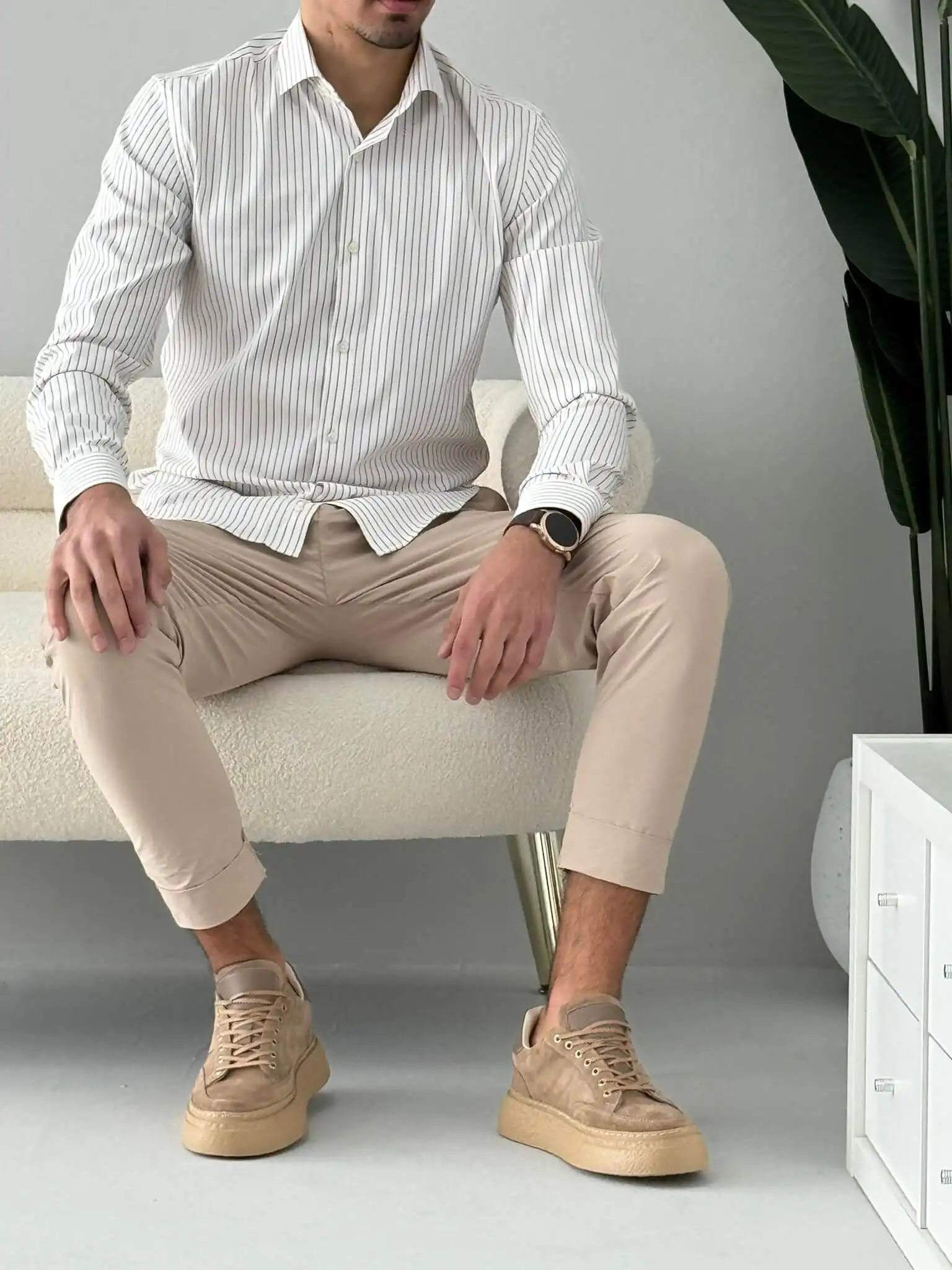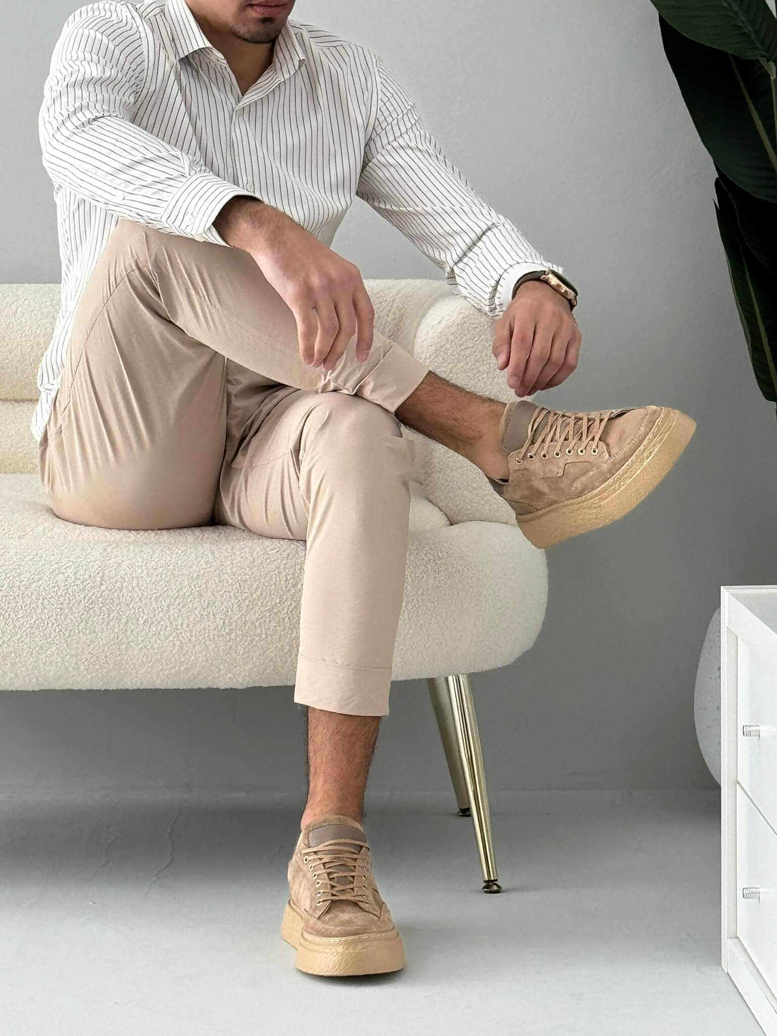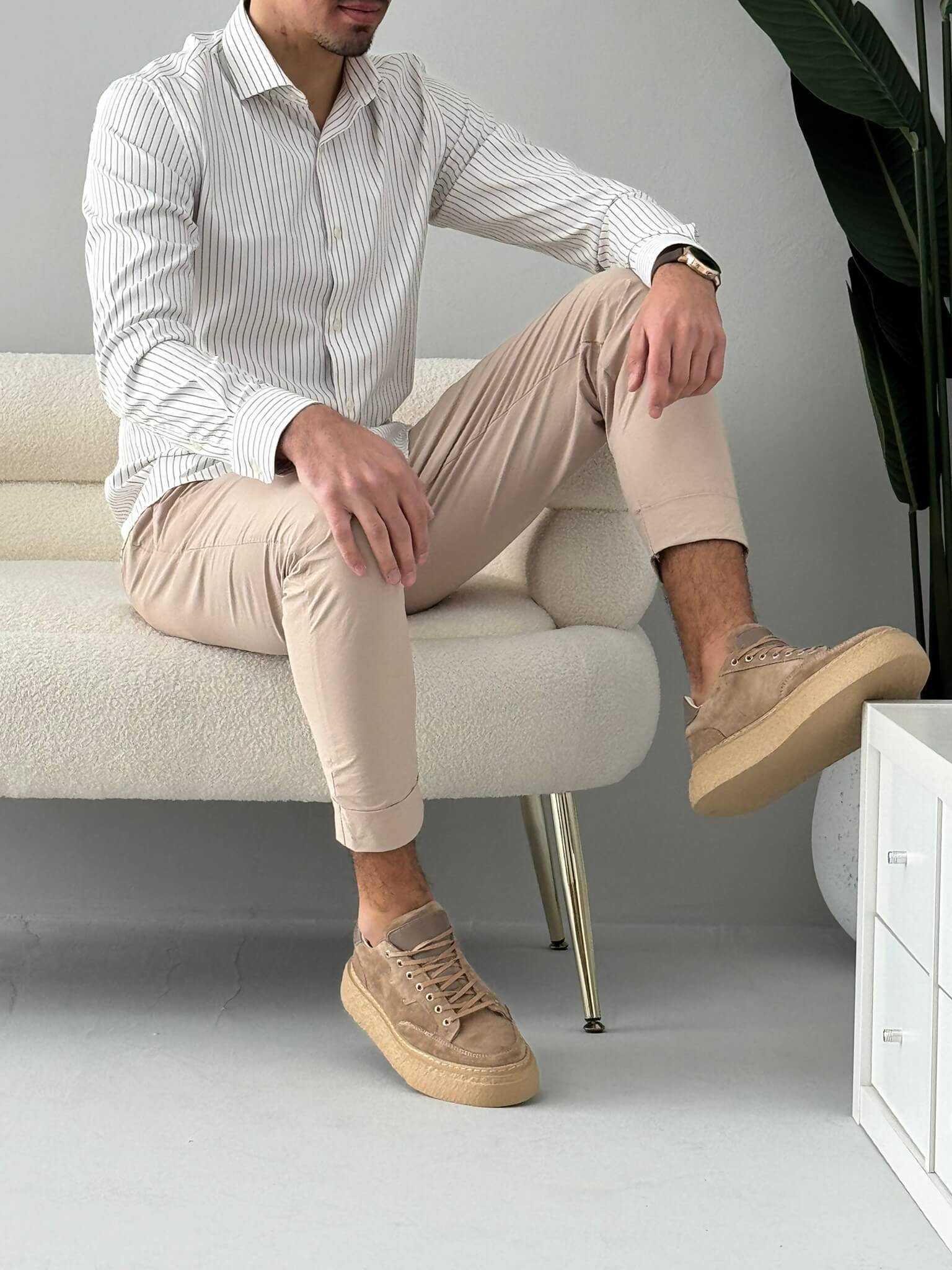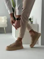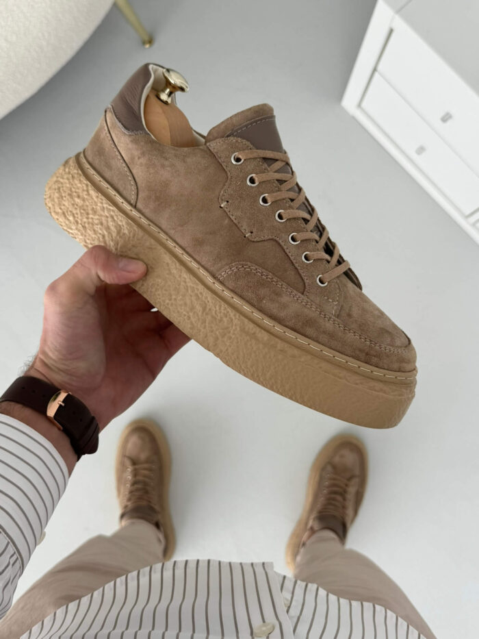 Muške kožne patike od antilopa – bež model sa debelim đonom