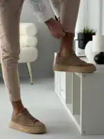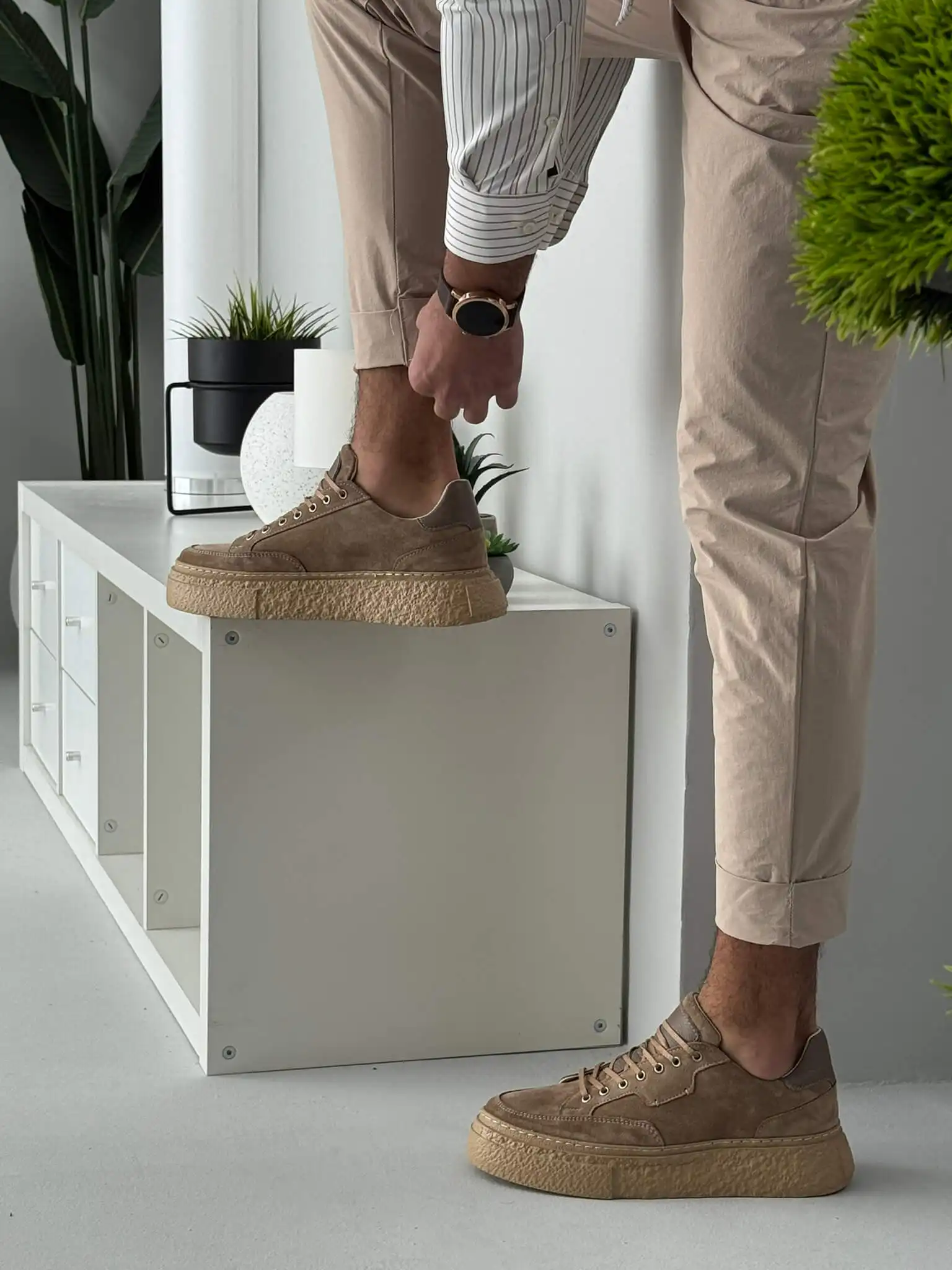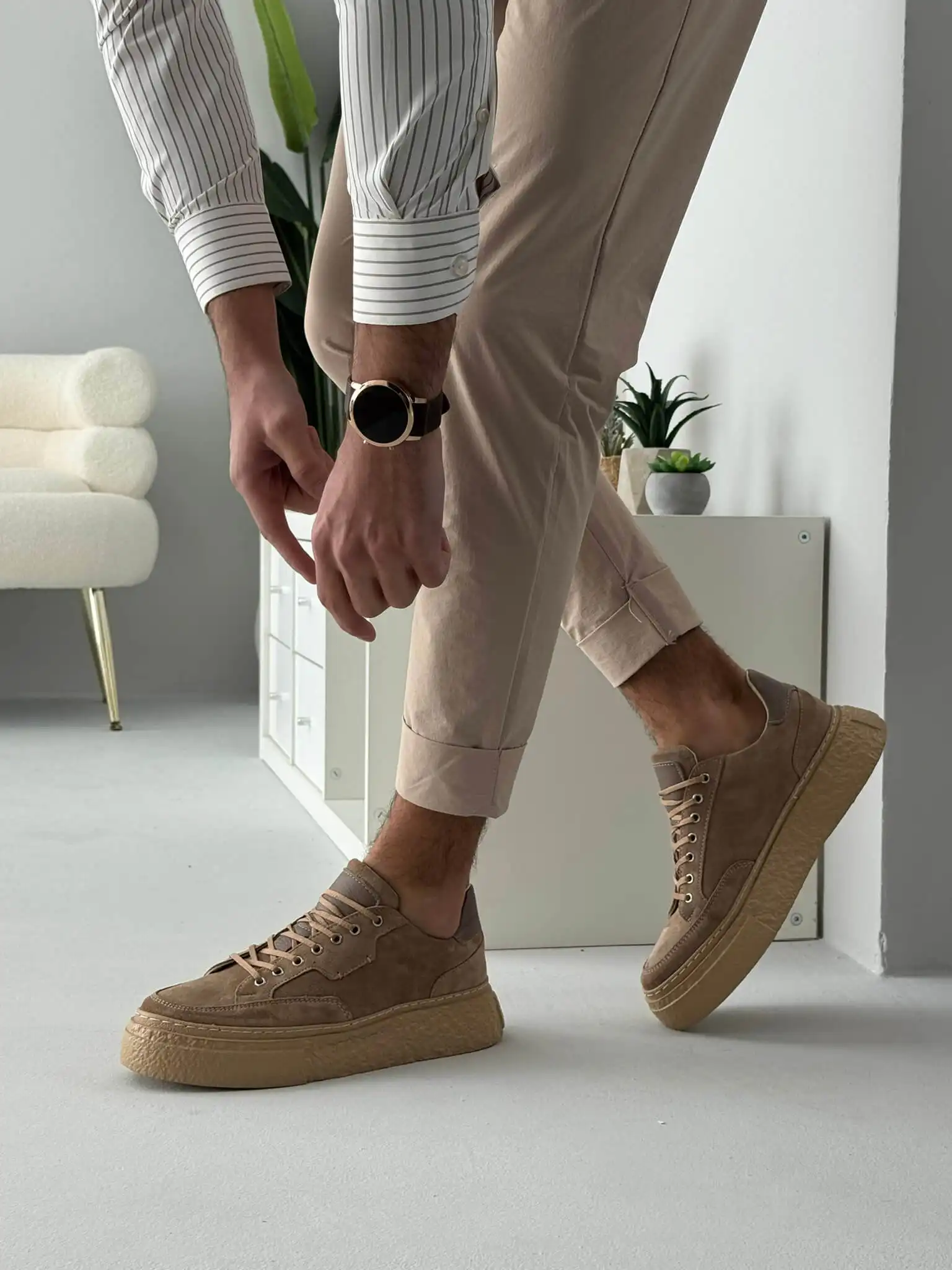 Muške kožne patike od antilopa u bež boji sa debelim đonom. Moderan casual model koji pruža udobnost, stabilnost i lako se kombinuje uz pantalone, farmerice ili smart kombinacije.