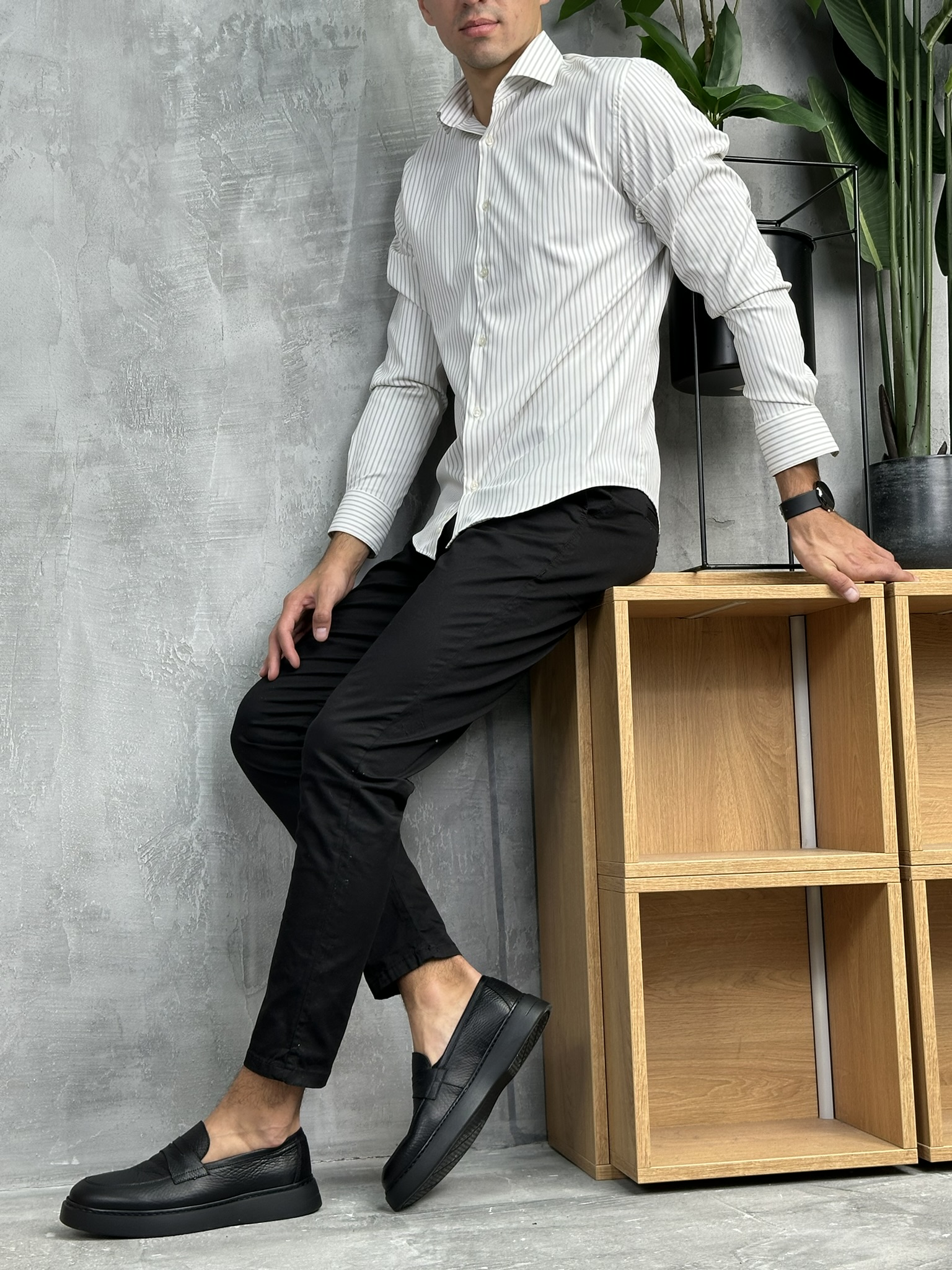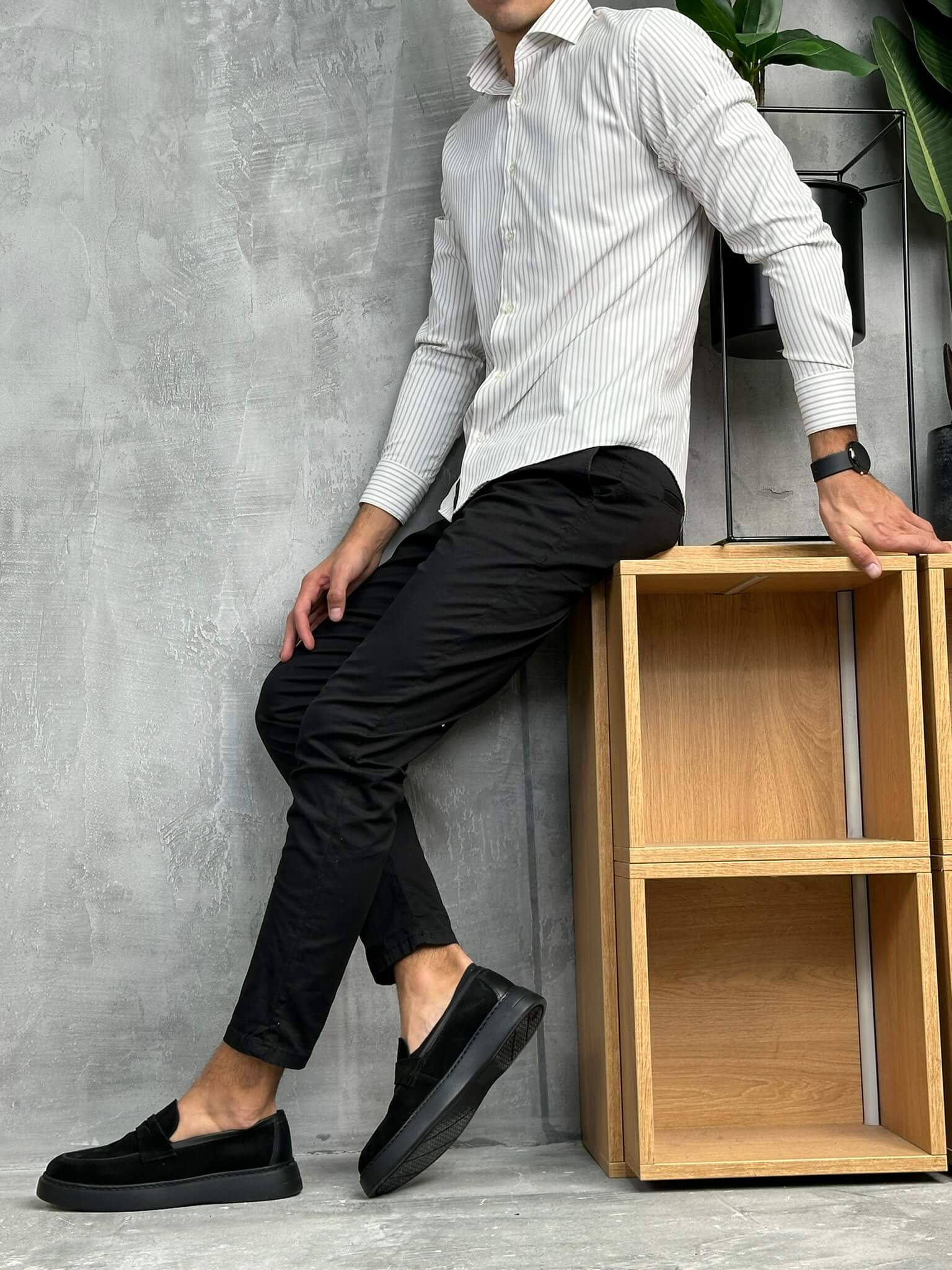 Elegantne, moderne i svedene mokasine koje lako postaju tvoj potpisni komad. Izrađene su od prave kože i finog brušenog nubuka, sa punim đonom koji pruža udobnost i stabilnost pri svakom koraku. Minimalistički dizajn i crna boja čine ih idealnim izborom za kombinovanje uz pantalone, farmerke ili sako.