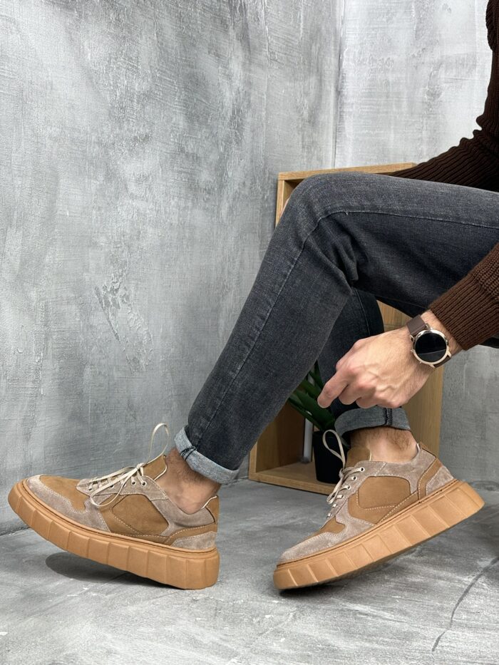 Udobnost koja ima stil. Ove kožne patike spajaju premium materijale i urbanu estetiku u jedan prepoznatljiv model. Kombinacija glatke i brušene kože u zemljanim tonovima daje im karakter i toplinu, dok masivni đon donosi stabilnost i moderan izgled.