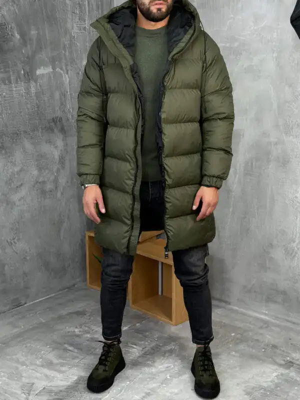 Muška jakna sa dva lica u crno-maslinastoj kombinaciji. Prikaz crne strane.