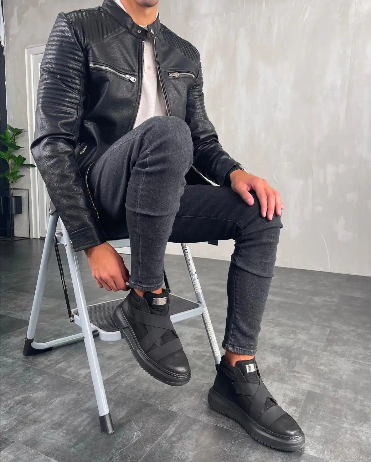 Muške poluduboke kožne cipele sa crnim đonom