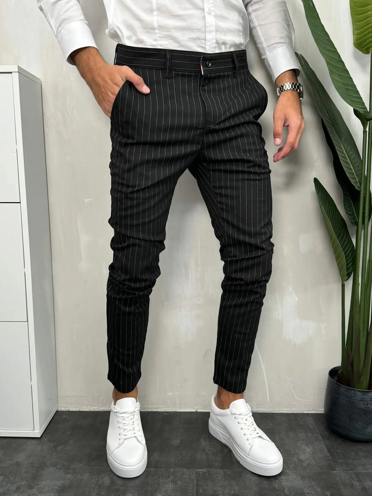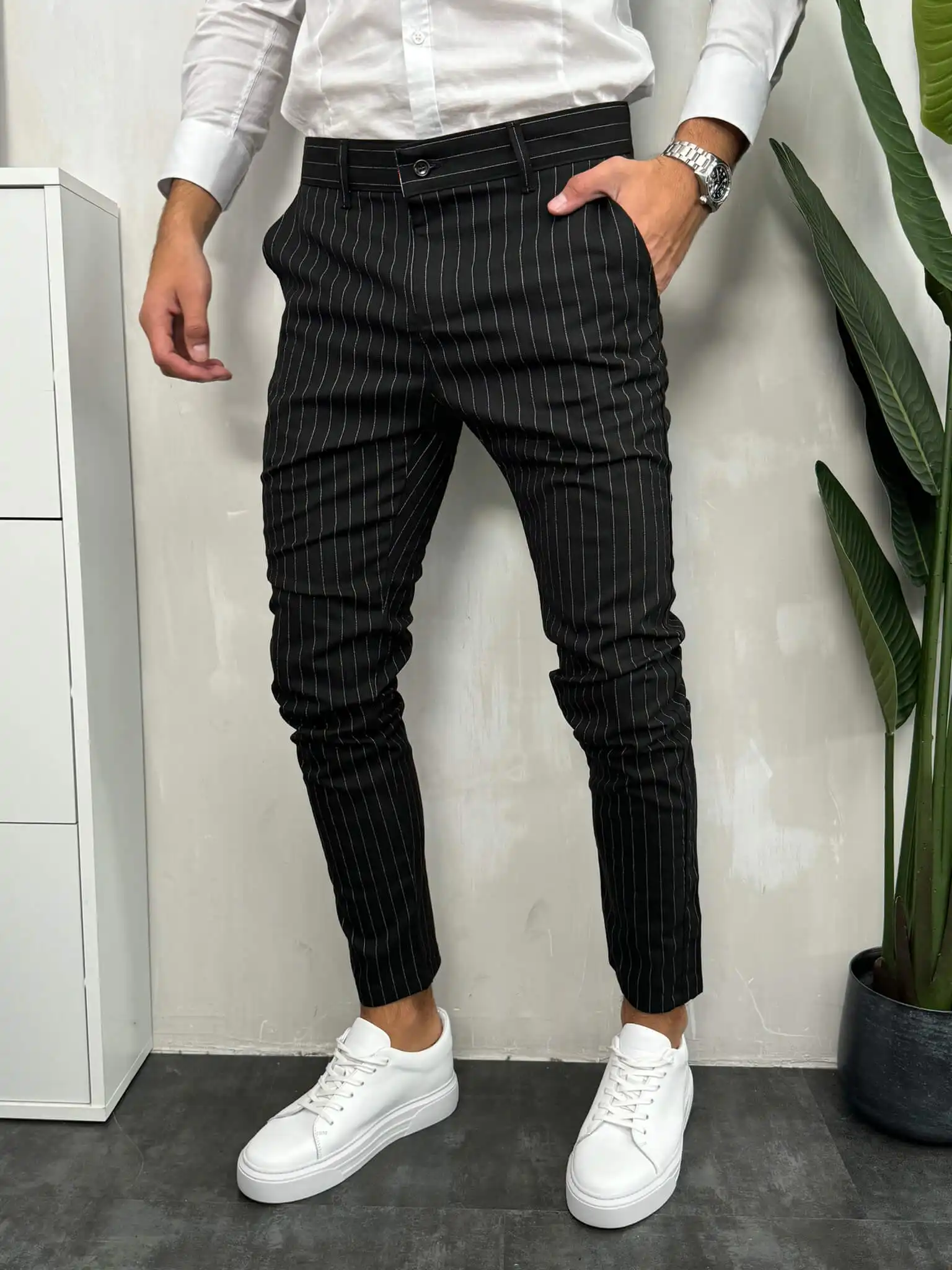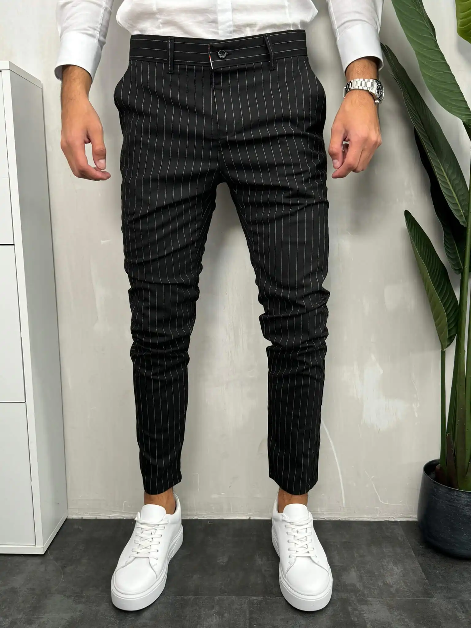 Muške slim fit pantalone na pruge – elegantne pantalone