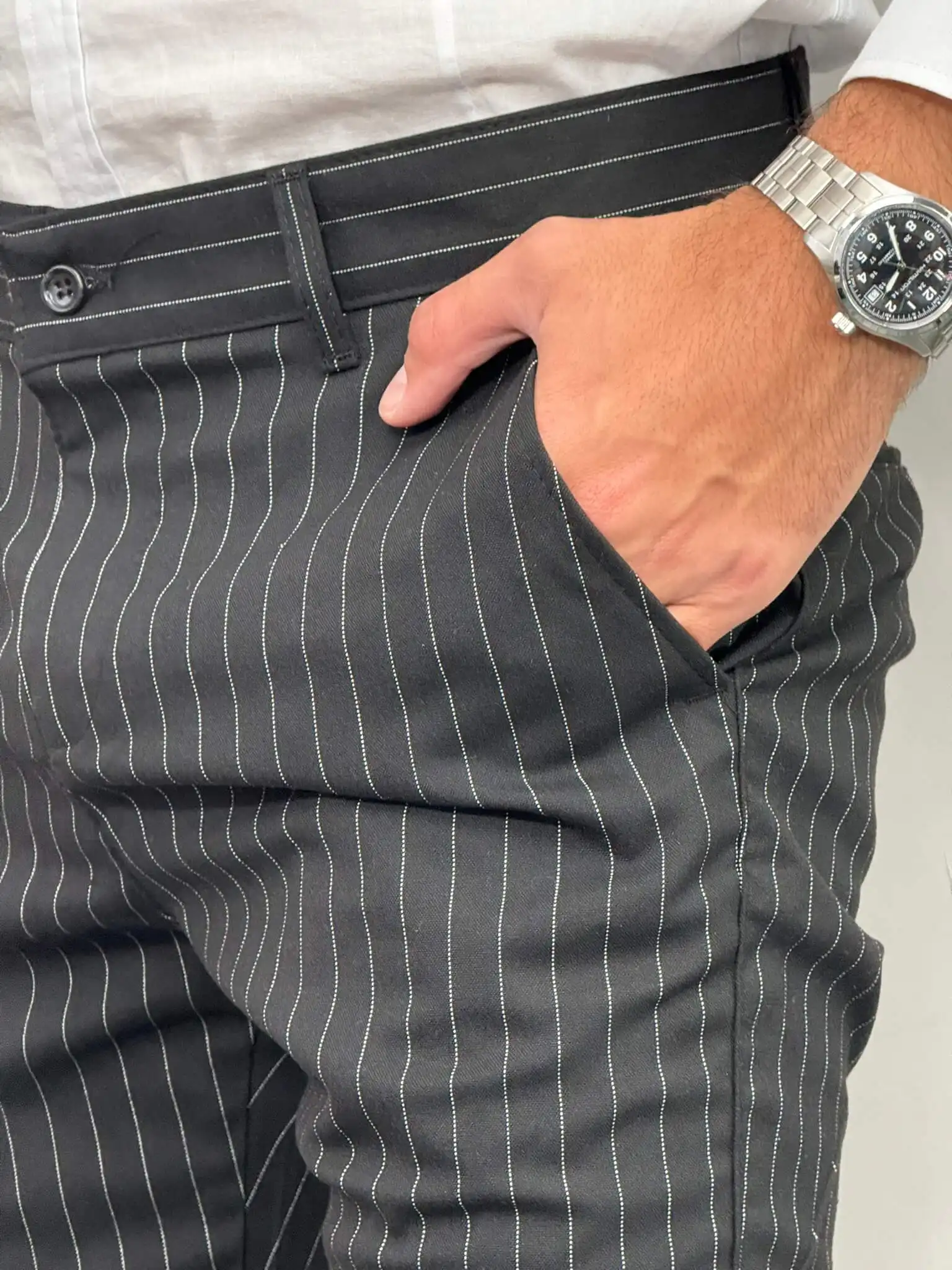 Preporuka za kombinovanje: Kombinujte ih sa klasičnom belom košuljom i mokasinama za poslovni izgled, ili dodajte tamni sako i elegantne cipele za formalniju priliku. Za opušteniji stil, uparite ih sa jednostavnim belim majicama i patikama.