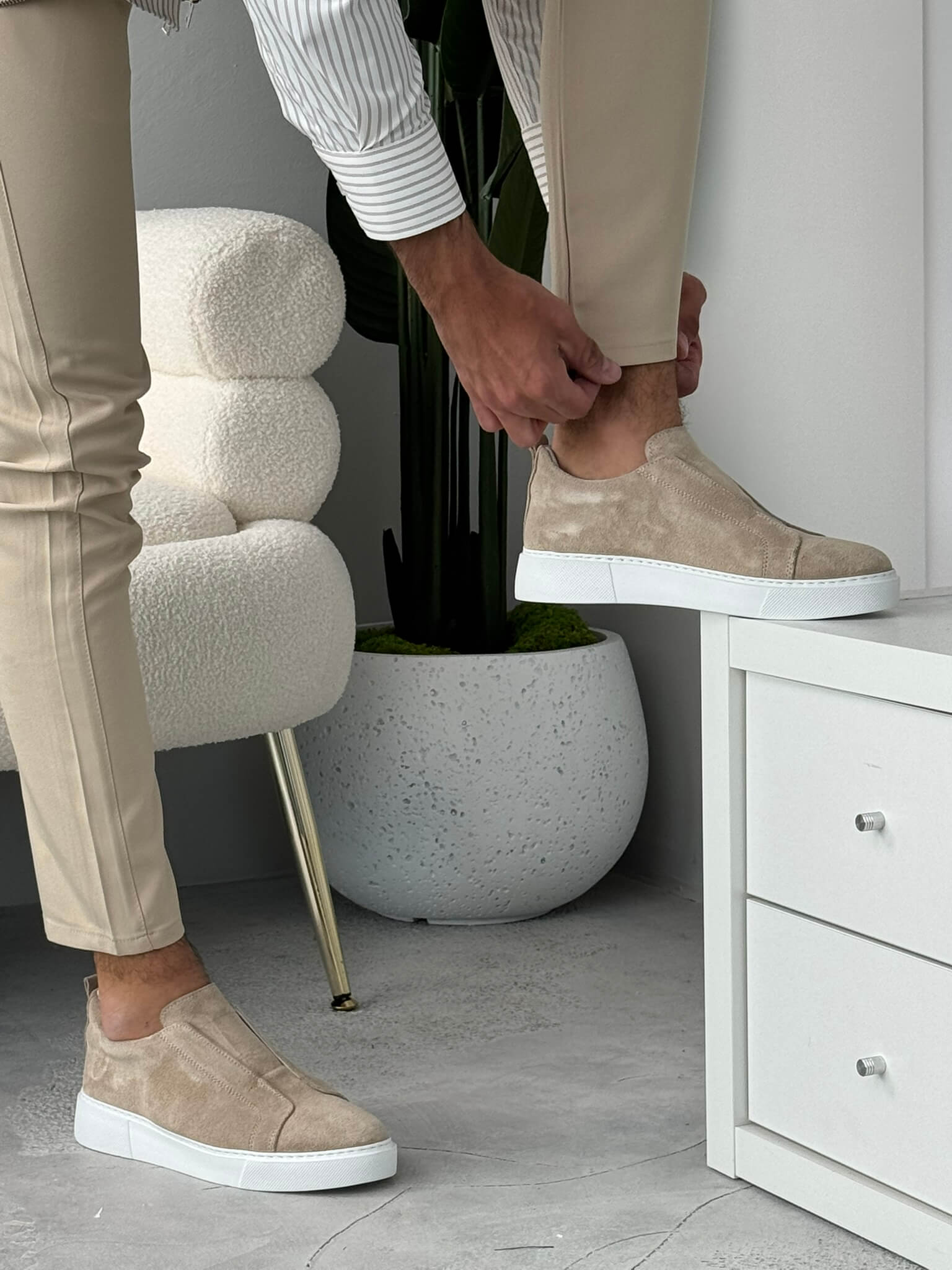 Ako tražiš patike koje možeš brzo da obuješ, a da i dalje izgledaš sređeno, ovaj slip-on model je odličan izbor. Bez pertli, udobne i lagane, lako se uklapaju uz pantalone, farmerke ili smart casual kombinacije. Idealne su za svakodnevne obaveze, posao ili izlazak kada želiš jednostavan, ali moderan izgled.