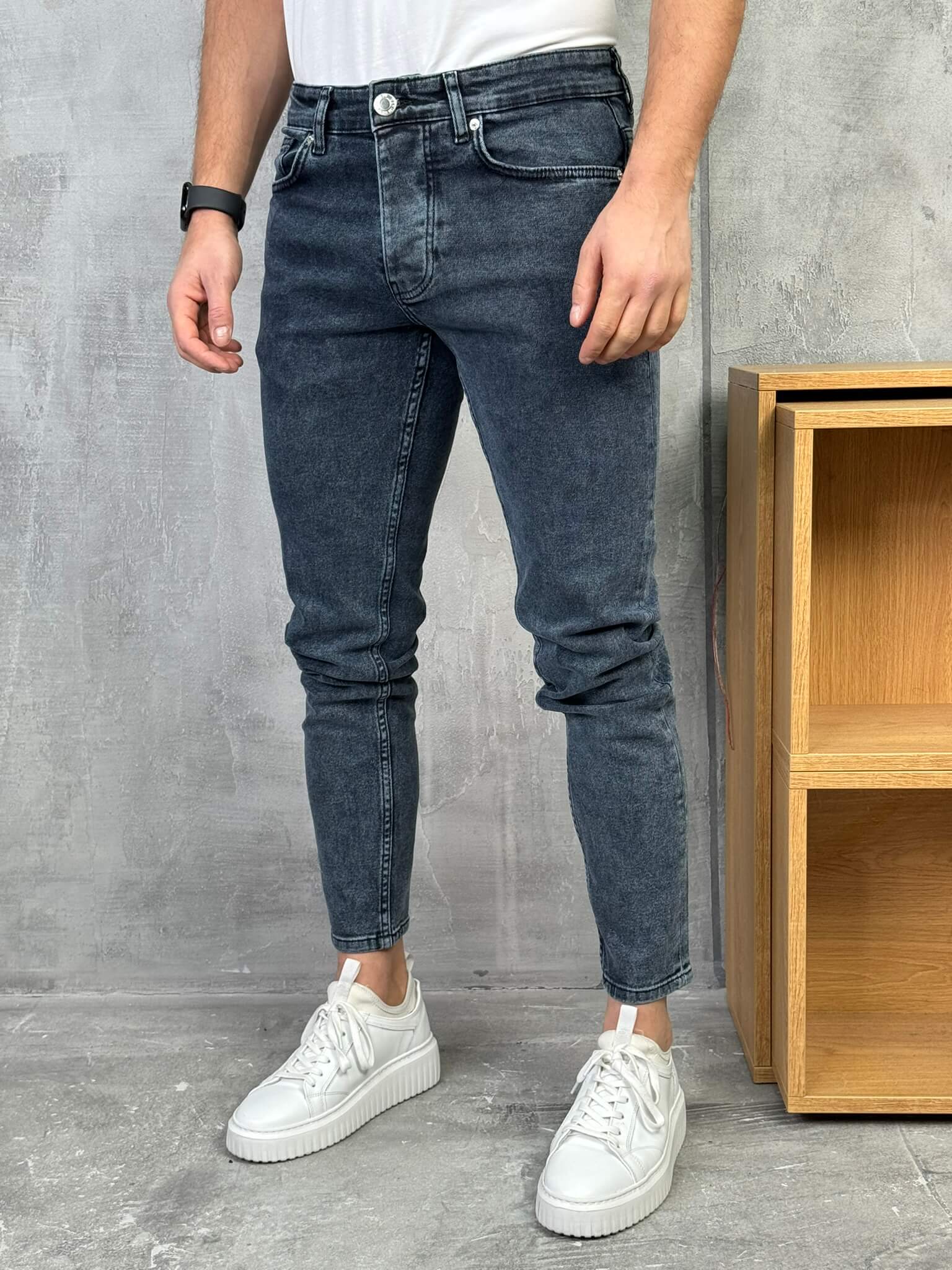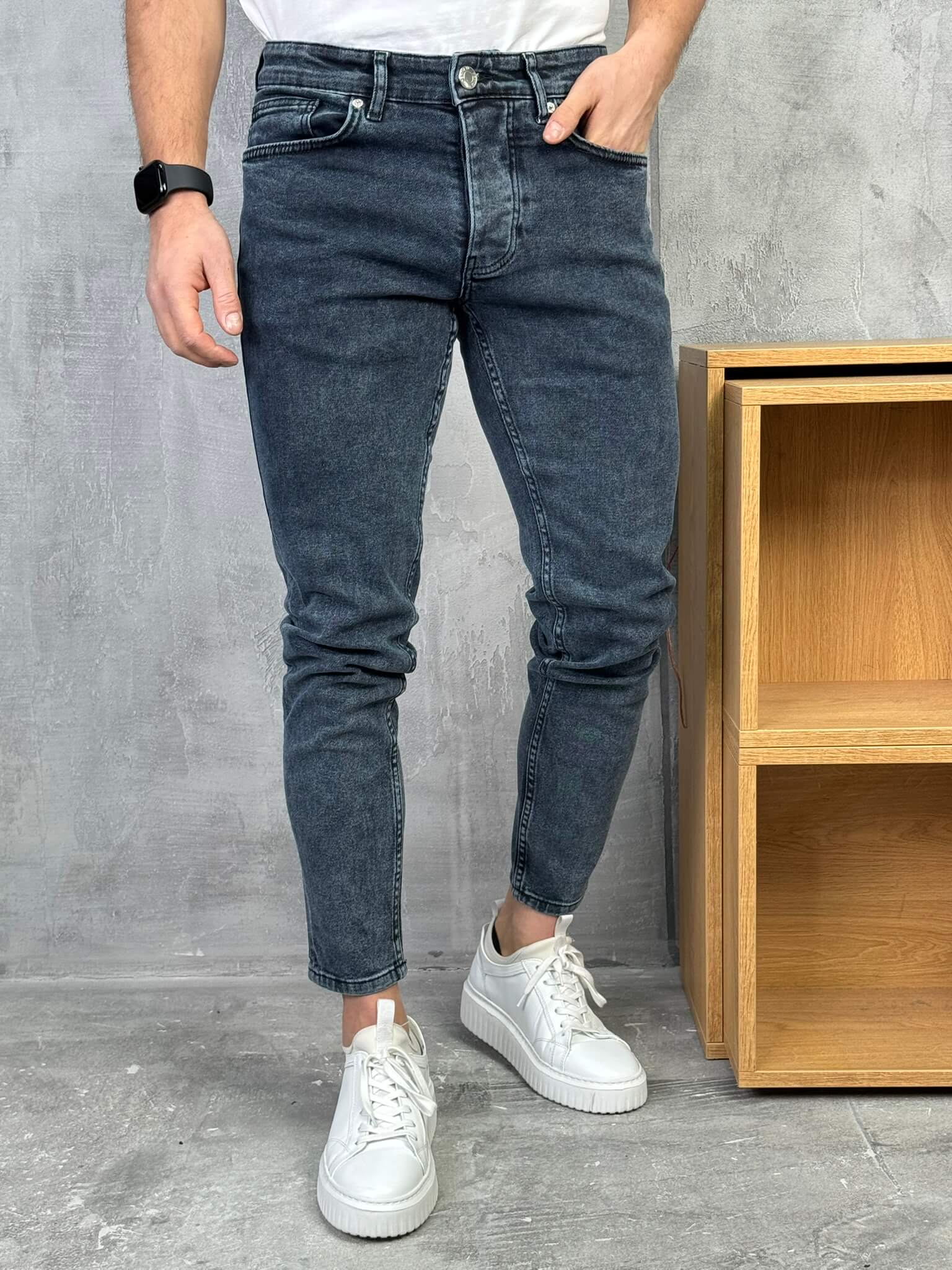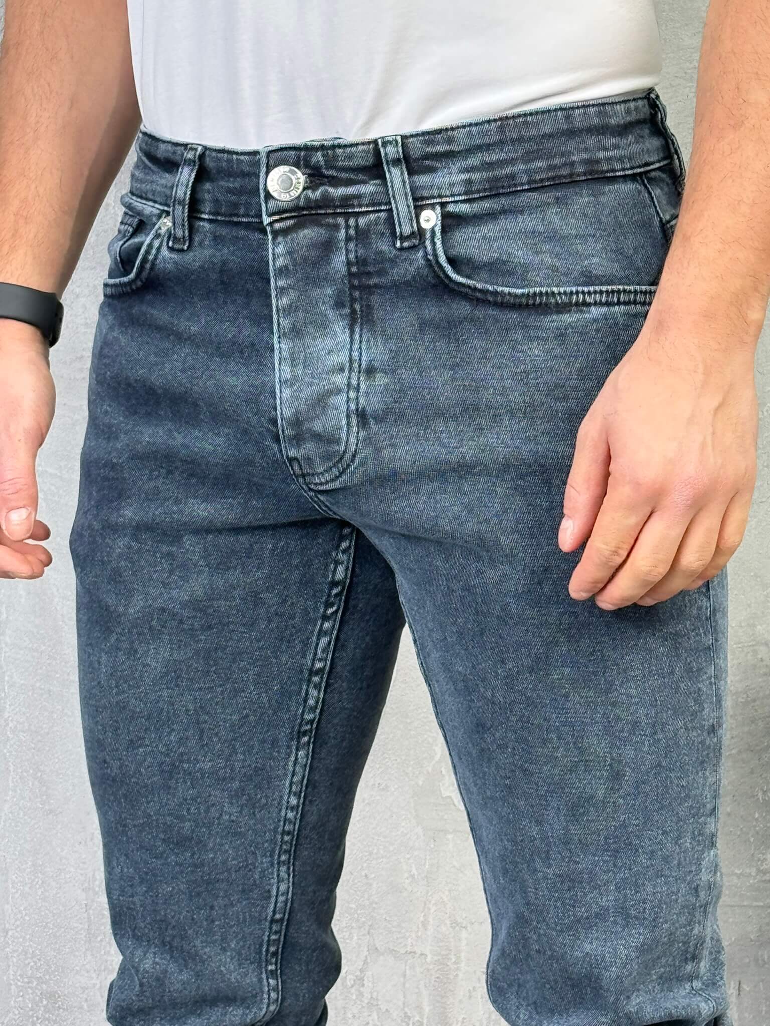 Muške slim fit farmerke sa rastegljivim materijalom i specifičnom kombinacijom crne i tamnoplave boje, idealne za moderan, svakodnevni stil. Udobne i savršeno oblikovane za urbane kombinacije.