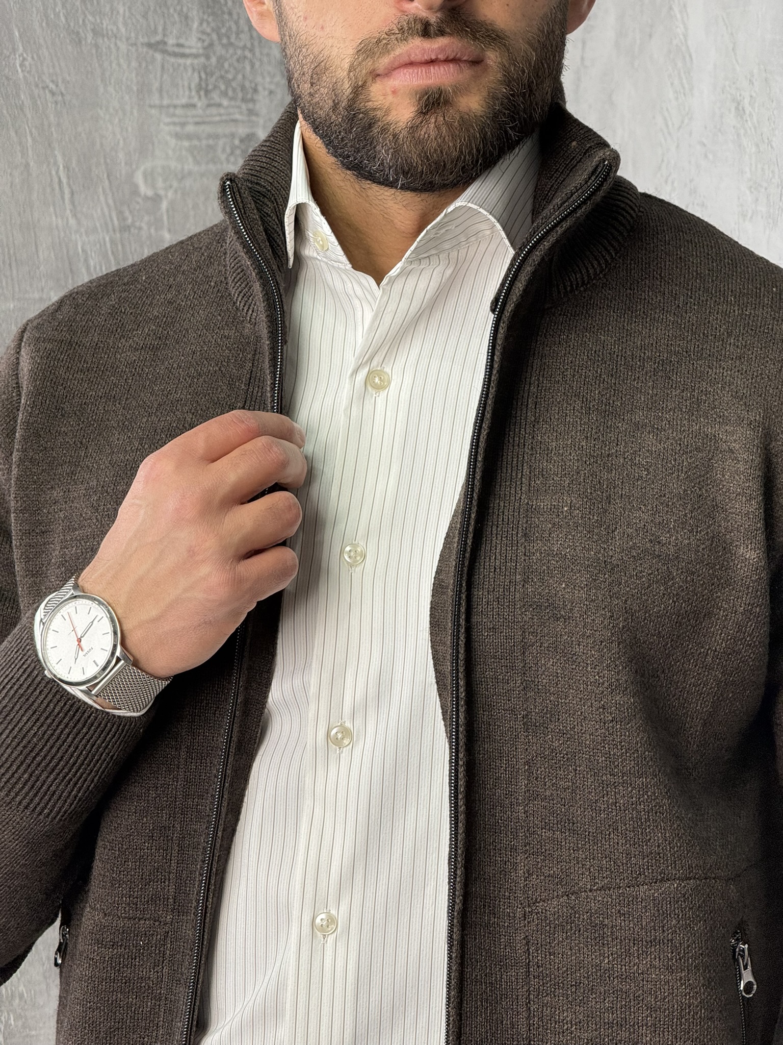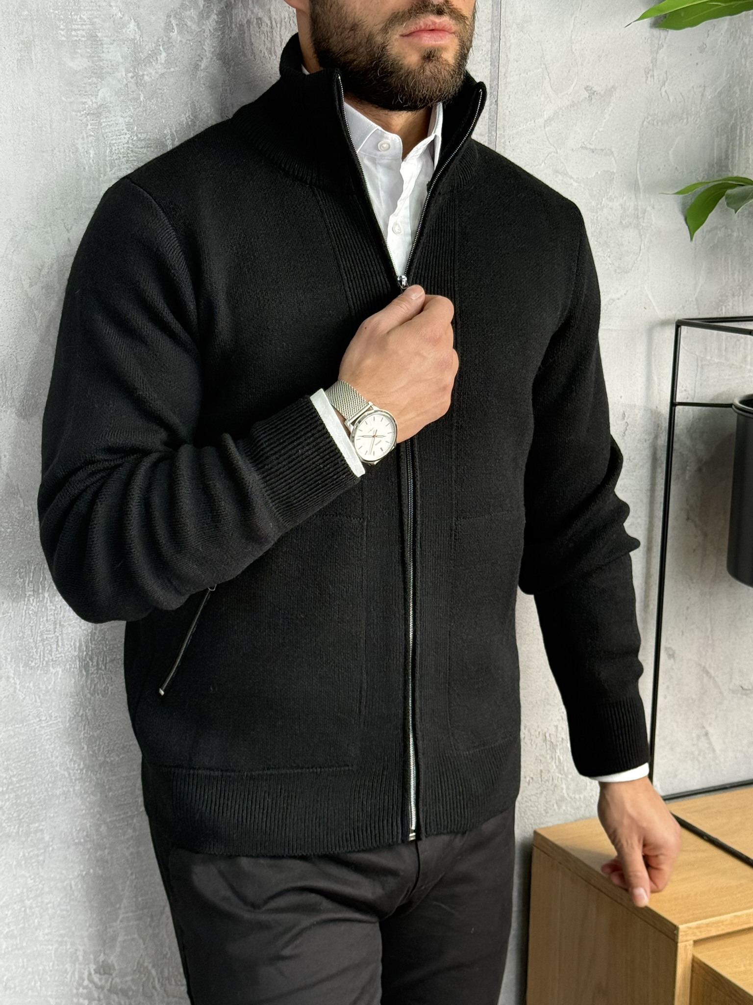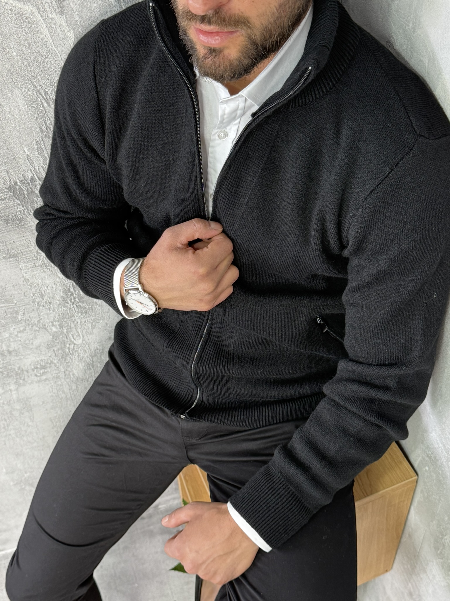 Elegantan i svestran model koji kombinuje izgled džempera i praktičnost jakne. Izrađen od mekog pletiva koje pruža udobnost i toplinu, a zahvaljujući rajsferšlusu duž cijele dužine lako se prilagođava svakoj prilici. Može se nositi preko košulje za poslovni izgled ili uz majicu za ležernu varijantu.