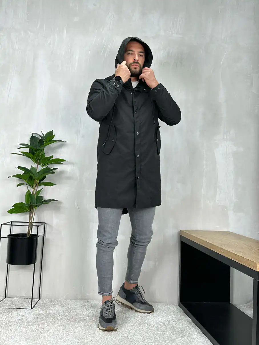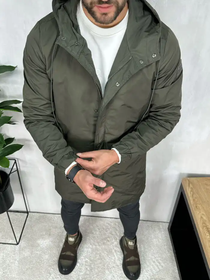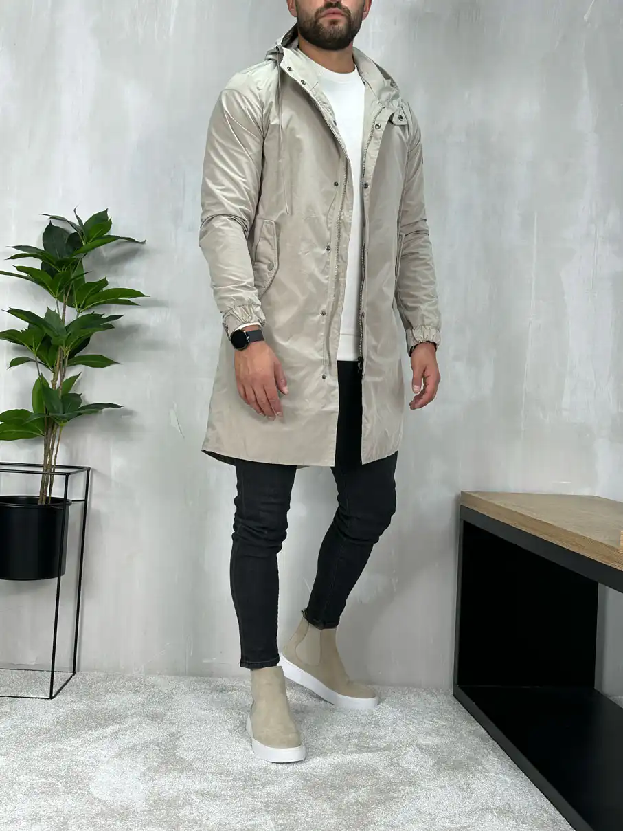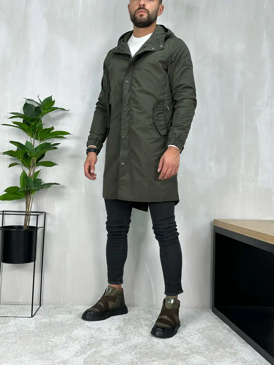 Muške dugačke kabanice od nepromočivog materijala sa kapuljačom.