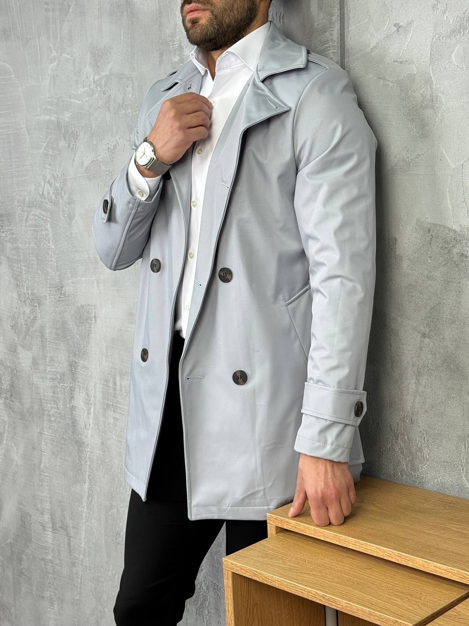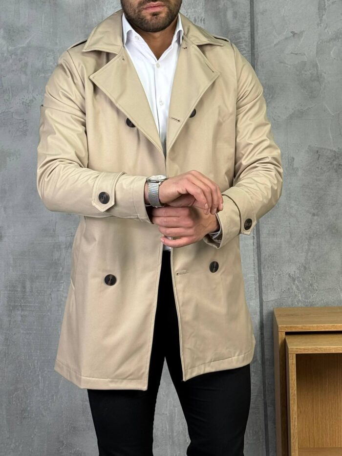 Muški mantil sa kaišem koji kombinuje eleganciju i praktičnost za prelazne sezone.