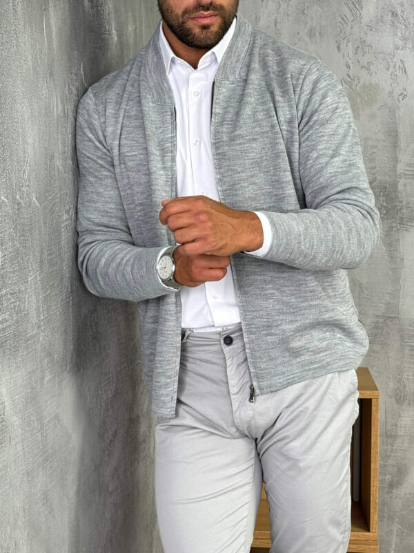 Muško svetlosivo prugasto odelo sportskog, elegantnog kroja odiše svežinom i modernom jednostavnošću. Prati liniju tela, pružajući uredan i ležerno sofisticiran izgled. Suptilne pruge unose dinamiku, čineći ga idealnim za prolećne i letnje prilike, poslovne sastanke ili dnevne stilizovane kombinacije.