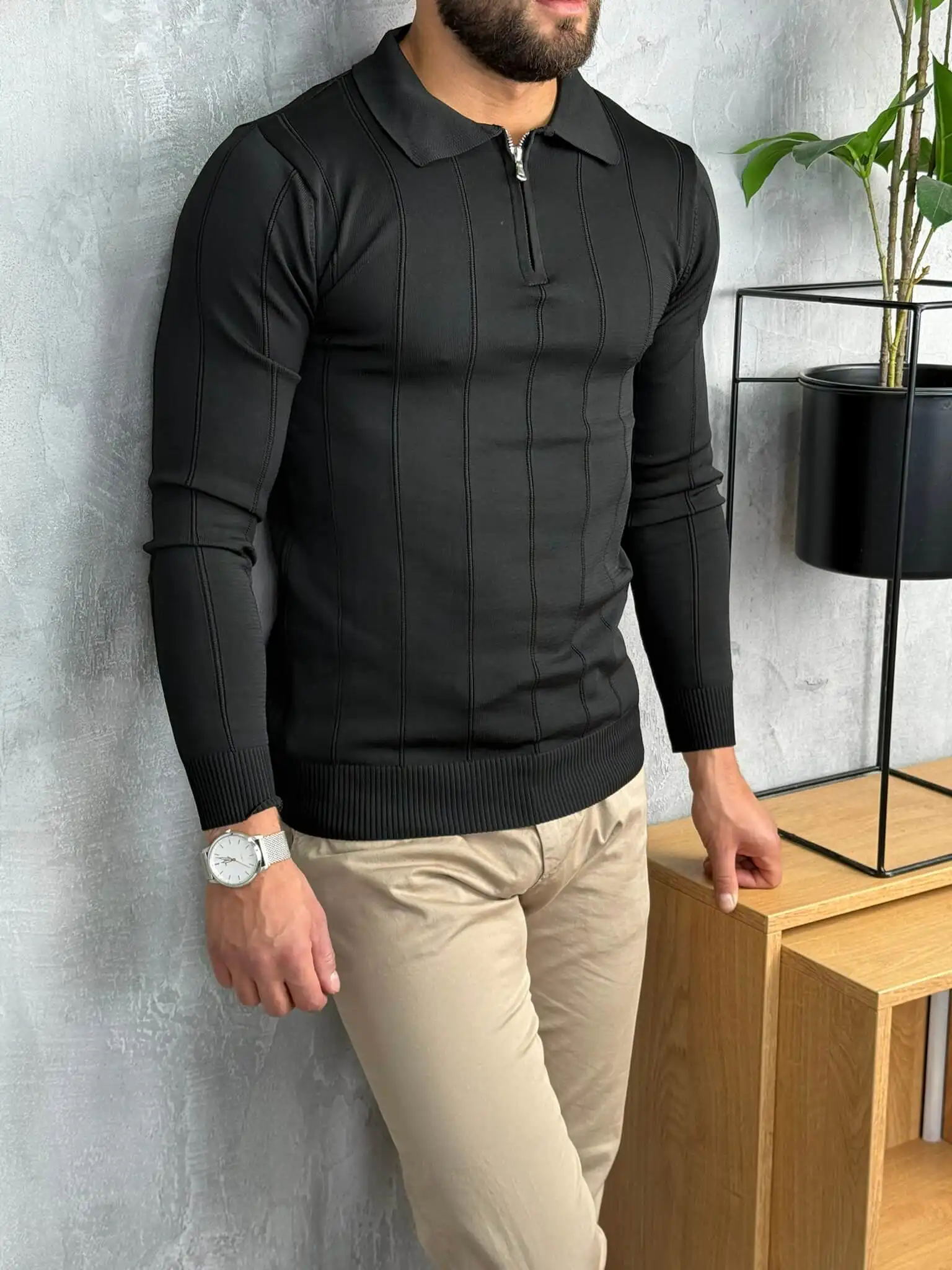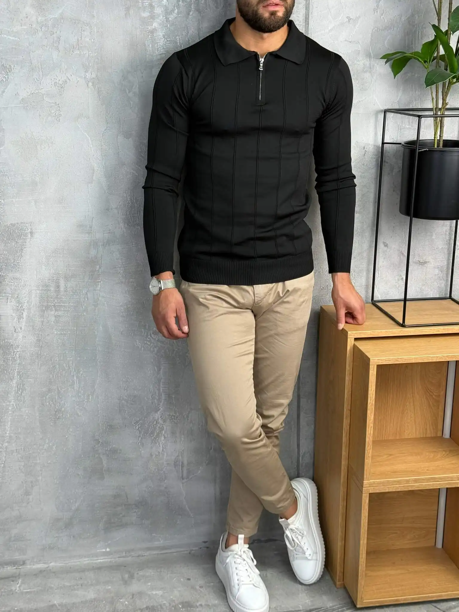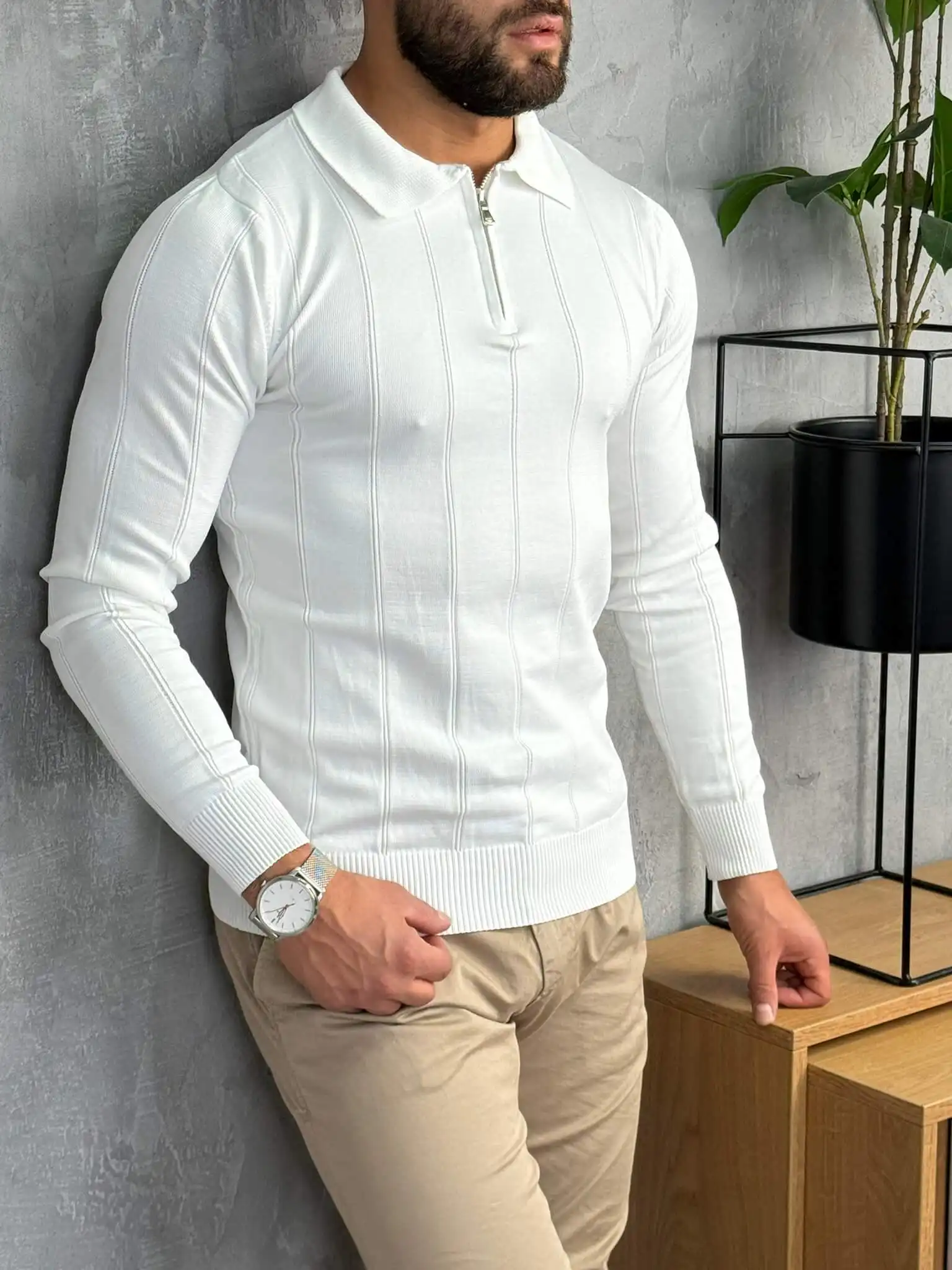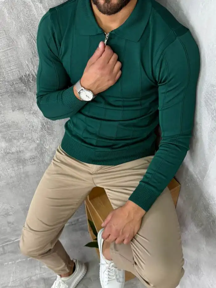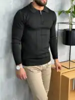 Ovaj muški džemper sa rajsferšlusom kombinuje toplinu, udobnost i moderan izgled u jednom komadu. Izrađen je od finog, mekanog pletiva koje pruža prijatan osećaj i stabilan oblik tokom celog dana. Zip zatvaranje omogućava lako prilagođavanje stila, dok visoki okovratnik daje dodatnu eleganciju i zaštitu tokom hladnijih dana.