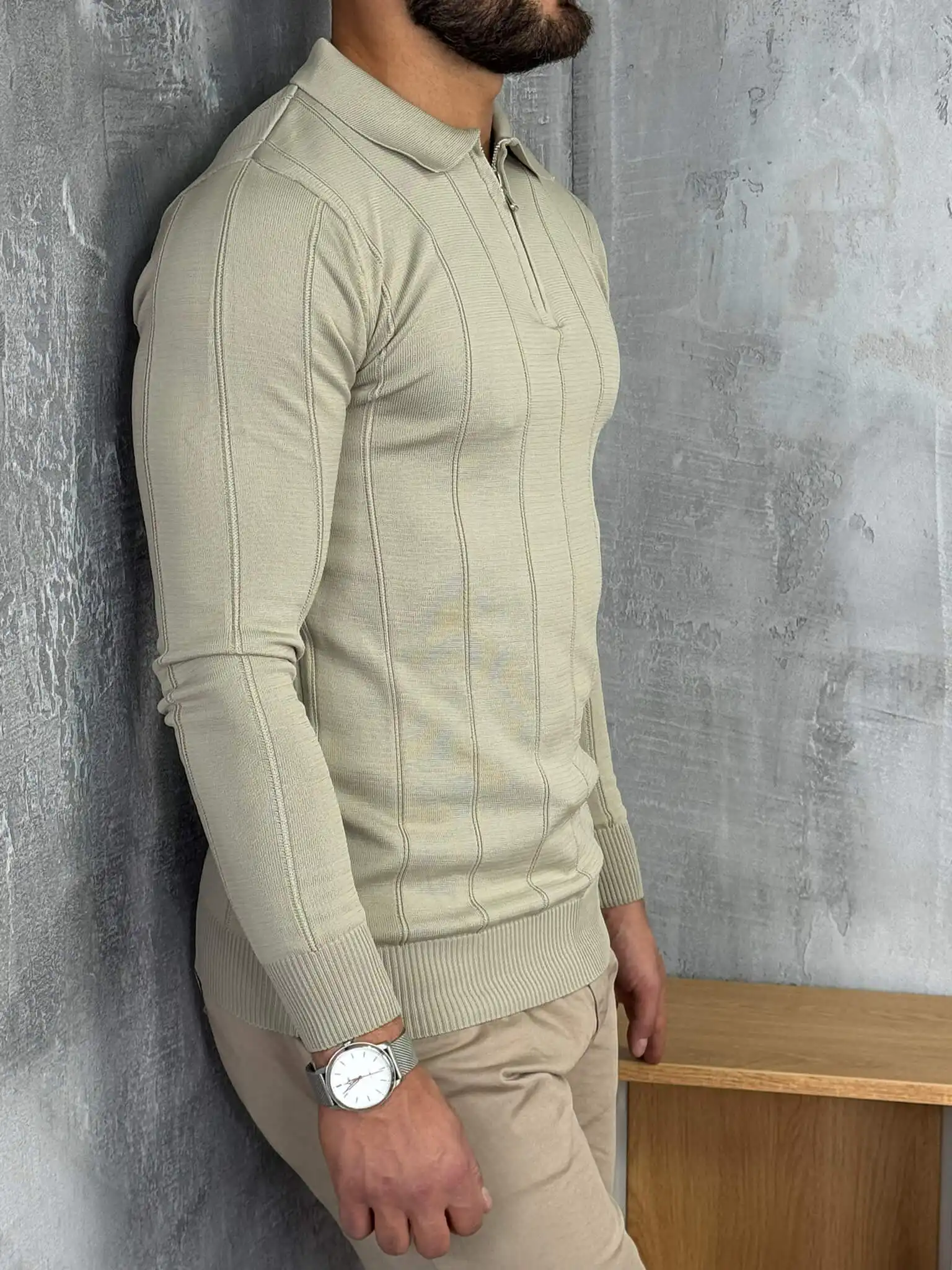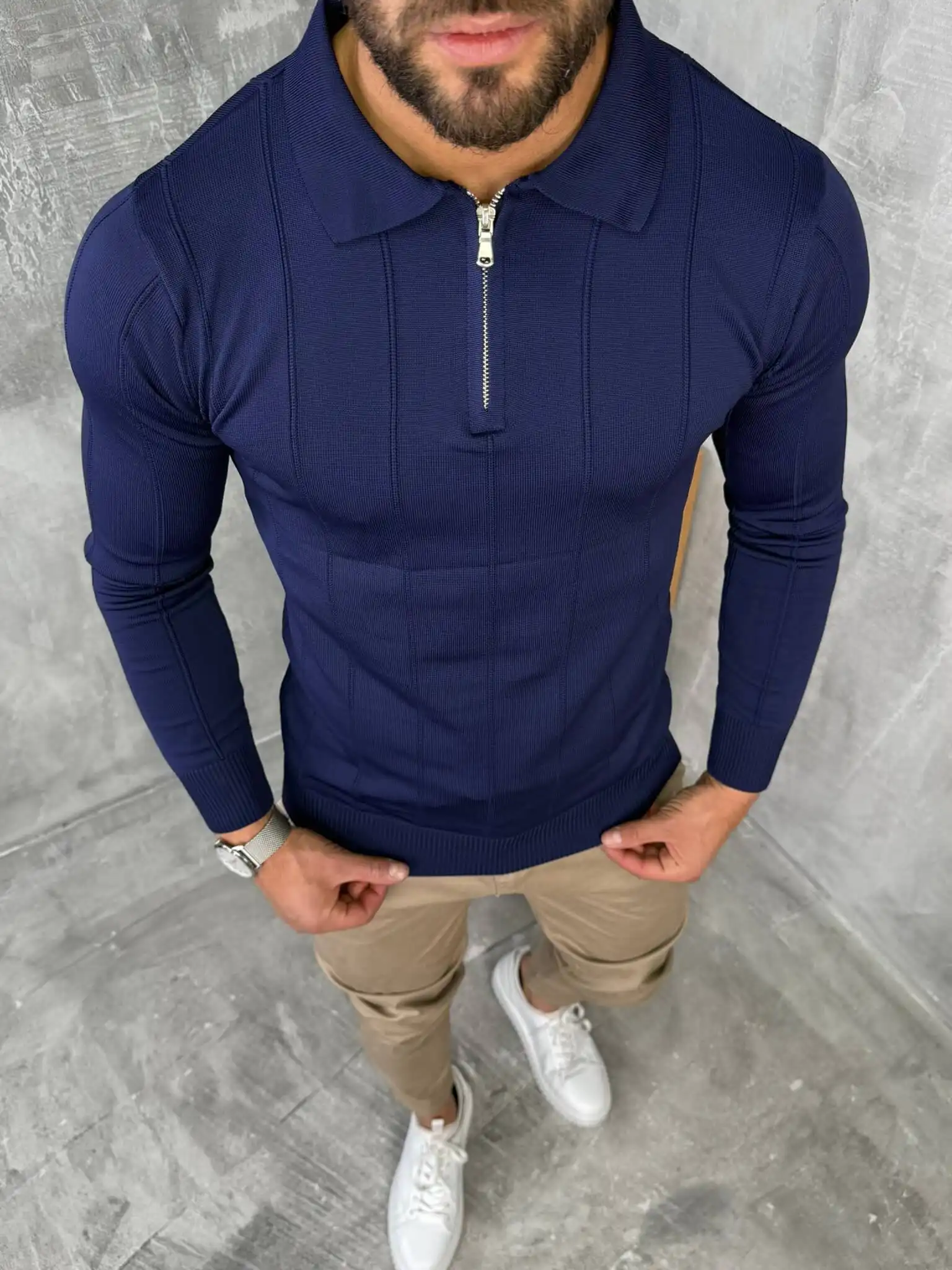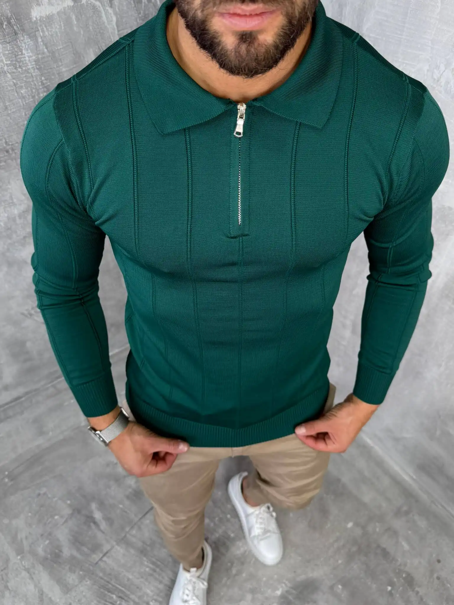 Ovaj muški džemper sa rajsferšlusom kombinuje toplinu, udobnost i moderan izgled u jednom komadu. Izrađen je od finog, mekanog pletiva koje pruža prijatan osećaj i stabilan oblik tokom celog dana. Zip zatvaranje omogućava lako prilagođavanje stila, dok visoki okovratnik daje dodatnu eleganciju i zaštitu tokom hladnijih dana.